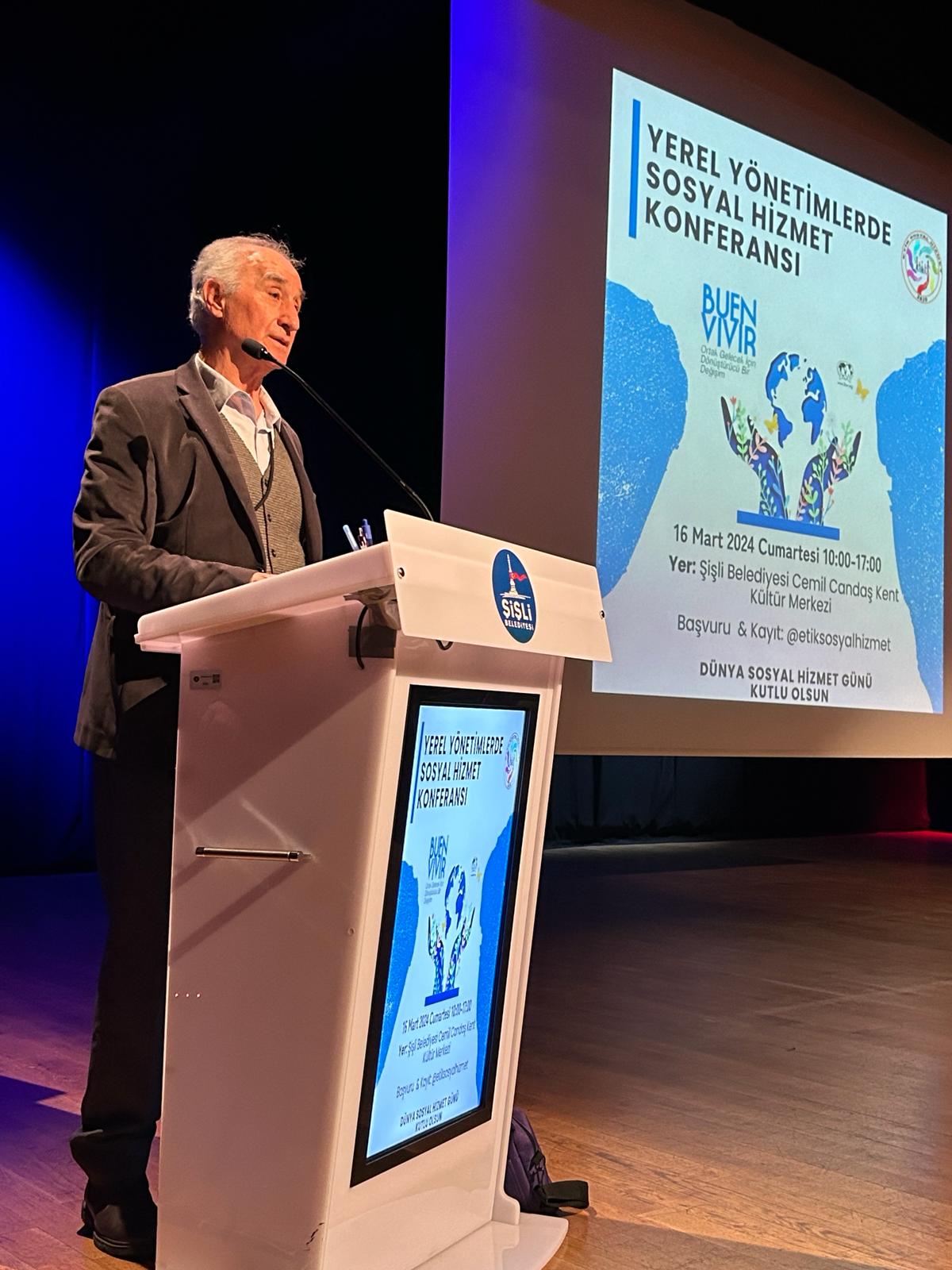 Şişli Belediyesi Cemil Candaş Kent Kültür Merkezi'nde gerçekleştirilen Yerel Yönetimlerde Sosyal Hizmet Konferansı'nda Sosyal Hizmet Bölüm Başkanı Prof. Dr. İlhan Tomanbay sunum gerçekleştirdi ve katılımcılardan gelen soruları cevapladı. Sosyal çalışmacıların yerel yönetimlerdeki rol ve sorumluluklarının konuşulduğu konferansa öğrenciler ve akademisyenler katılım sağladı.