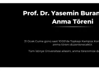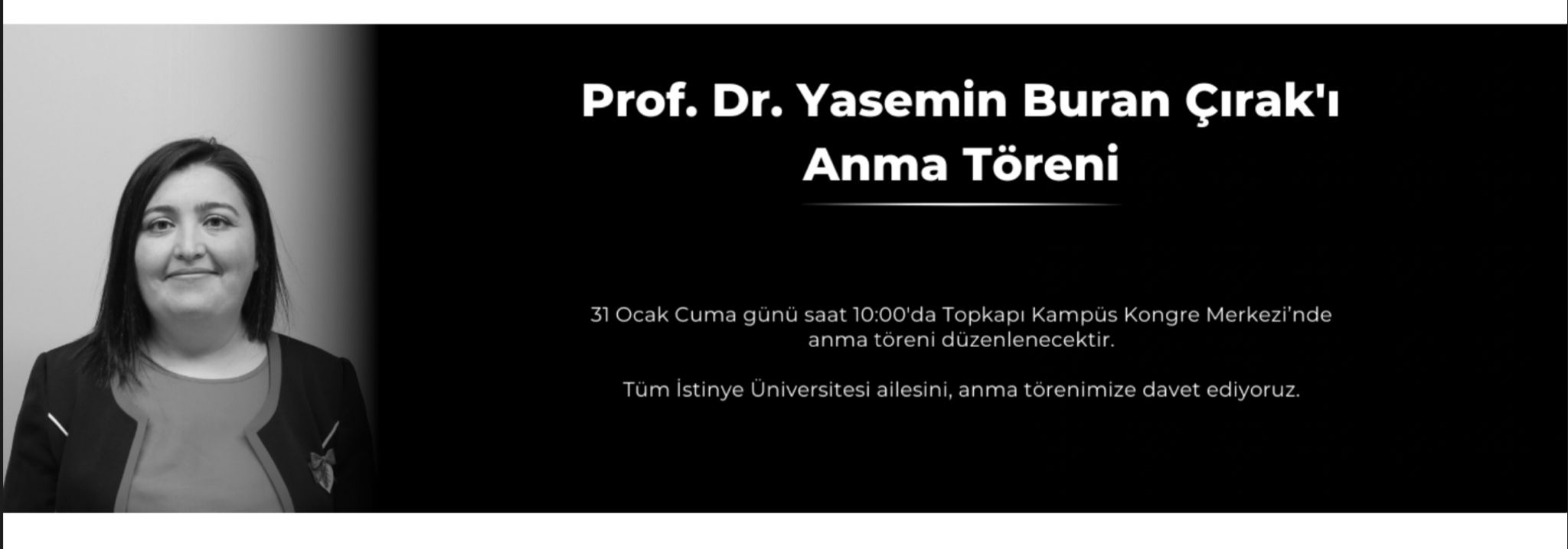 Sayın Dekanımız Prof. Dr. Yasemin Buran Çırak'ı anmak için 31.01.2025 tarihi saat 10:00'da İstinye Üniversitesi Topkapı Kampüsü Kampüsü Kongre Merkezi'nde Anma Töreni düzenlenecektir.