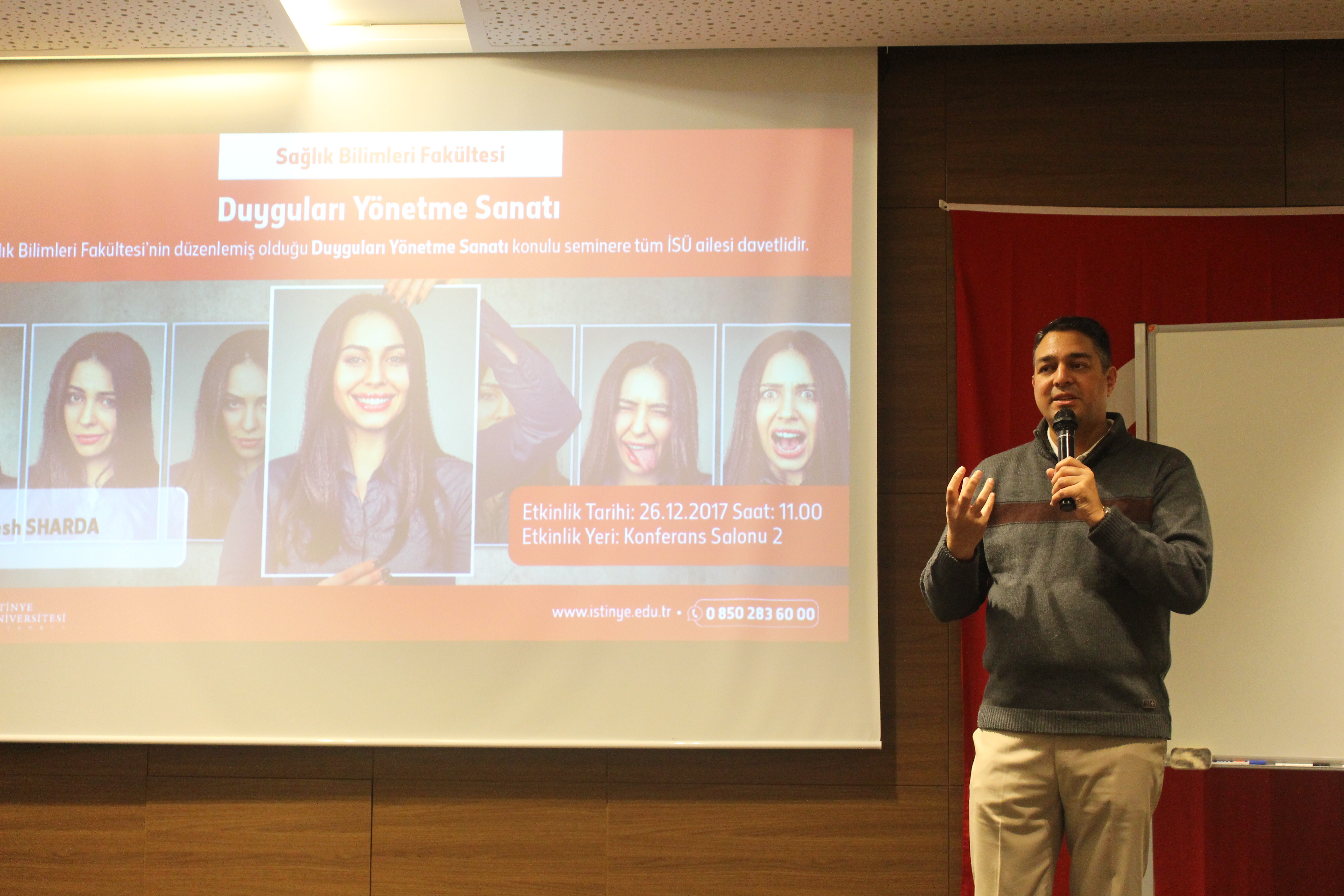 İstinye Üniversitesi Sağlık Bilimleri Fakültesi tarafından düzenlenen ‘’Duyguları Yönetme Sanatı’’ adlı etkinlik, gelişim eğitmeni Yogesh SHARDA’nın katılımıyla İstinye Üniversitesi Topkapı Kampüsünde gerçekleşti.