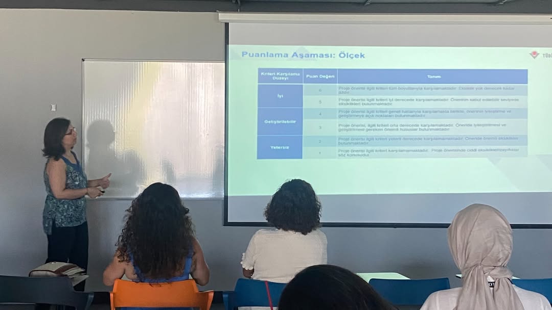 "TÜBİTAK ARDEB 1001 PROJE YAZMA EĞİTİMİ" kapsamında, yazım süreci, dikkat edilmesi gereken temel noktalar, kurul değerlendirmeleri ve proje süreçleri detaylı bir şekilde ele alındı.