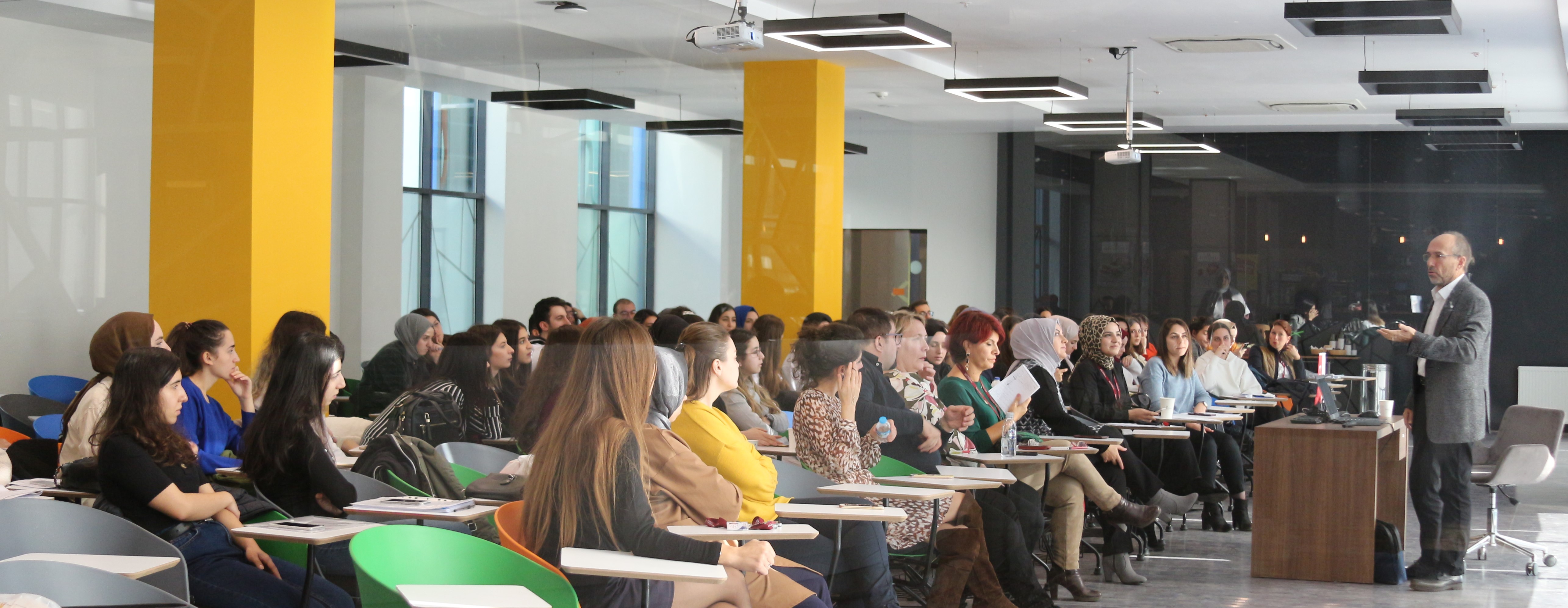 Hastane Mimarisinde Temel İlkeler ve Ölçütler adlı etkinlik; İktisadi ve İdari Bilimler Fakültesi Sağlık Yönetimi bölüm ile Sağlık Hizmetleri Meslek Yüksekokulu ev sahipliğinde, Geyran Mimarlık ofisinin kurucusu Y. Mimar Kenan Geyran’ın katılımı ile gerçekleşti. Oldukça verimli geçen etkinlik için öncelikle Y. Mimar Kenan Geyran’a daha sonra, saygıdeğer hocalara ve değerli öğrencilere teşekkür ederiz.