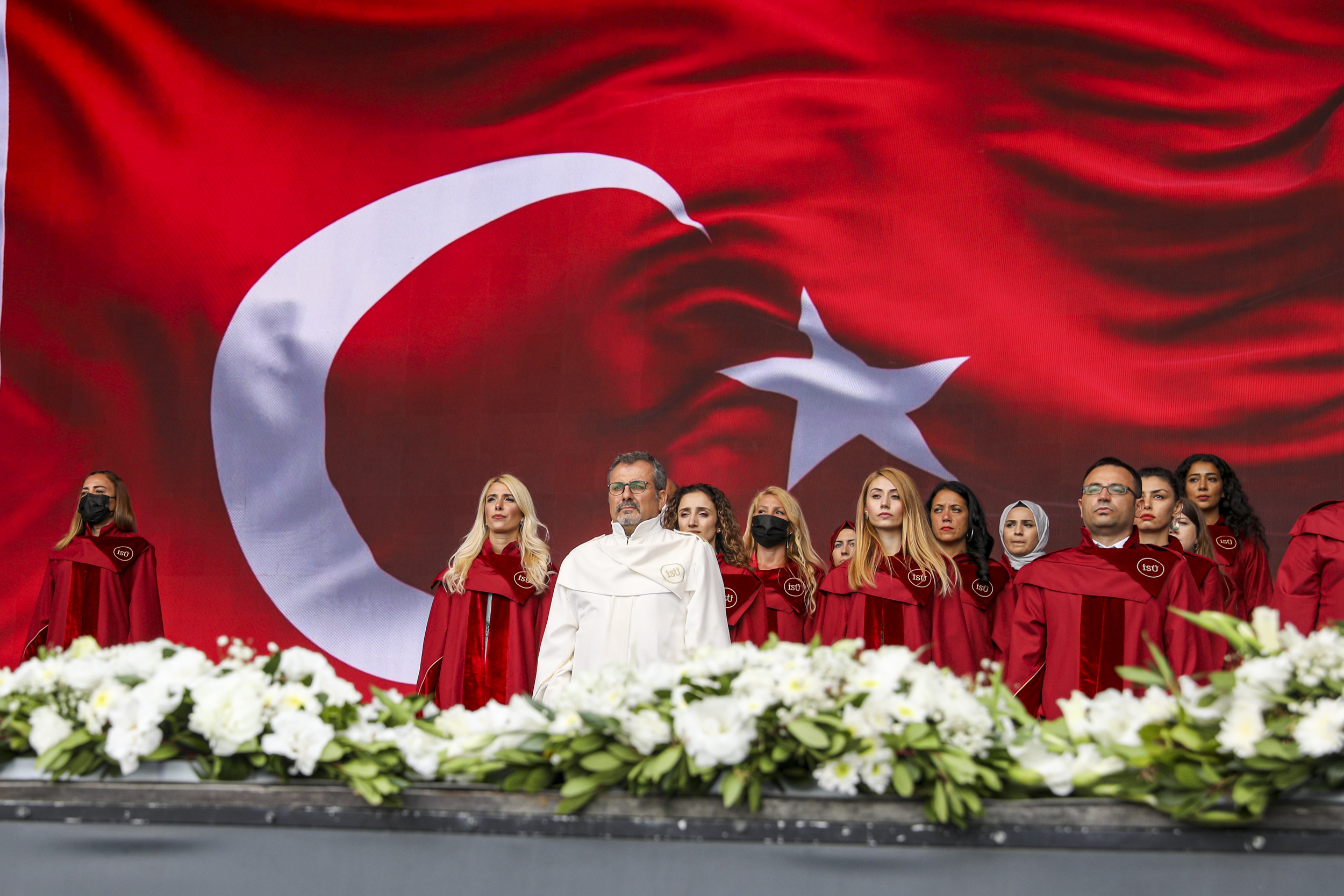 Törende söz alan İstinye Üniversitesi Mütevelli Heyet Başkanı Dr. Muharrem Usta, ‘’Mezun olarak iş hayatına başlamanın heyecanı içerisindesiniz. Bu süreçte sakın ürkek olmayın; kendine güveni olan, eğitim hayatında aldığı birikimi gösteren, kendisinin farkında olan, emek veren ve aklını sonuna kadar ısrarla kullanan İstinyeliler olmanızı istiyorum’’ dedi. Hayatta başarılı olmanın değer üretmekten geçtiğini belirten Dr. Muharrem Usta, ‘’Sizler ulvi değerlerden taviz vermeden çalışarak; bizim neslimizin yapamadıklarını da başarırken, hep beraber ortaya koyduğumuz emekle ırksal, inançsal ve politik ayrımcılıklara yer olmayan yepyeni bir dünya inşa edeceğiz. Sizler bu değişimin ve dijital dönüşümün tam ortasında yer alan evrensel bireyler olduğunuzu asla unutmayın. Bu yolculukta önünüze çıkan fırsatları en iyi şekilde değerlendirerek ve düşünme diyenlere inat daha fazla düşünerek bu değişimde yerinizi almalısınız.’’ sözleriyle öğrencilere seslendi.