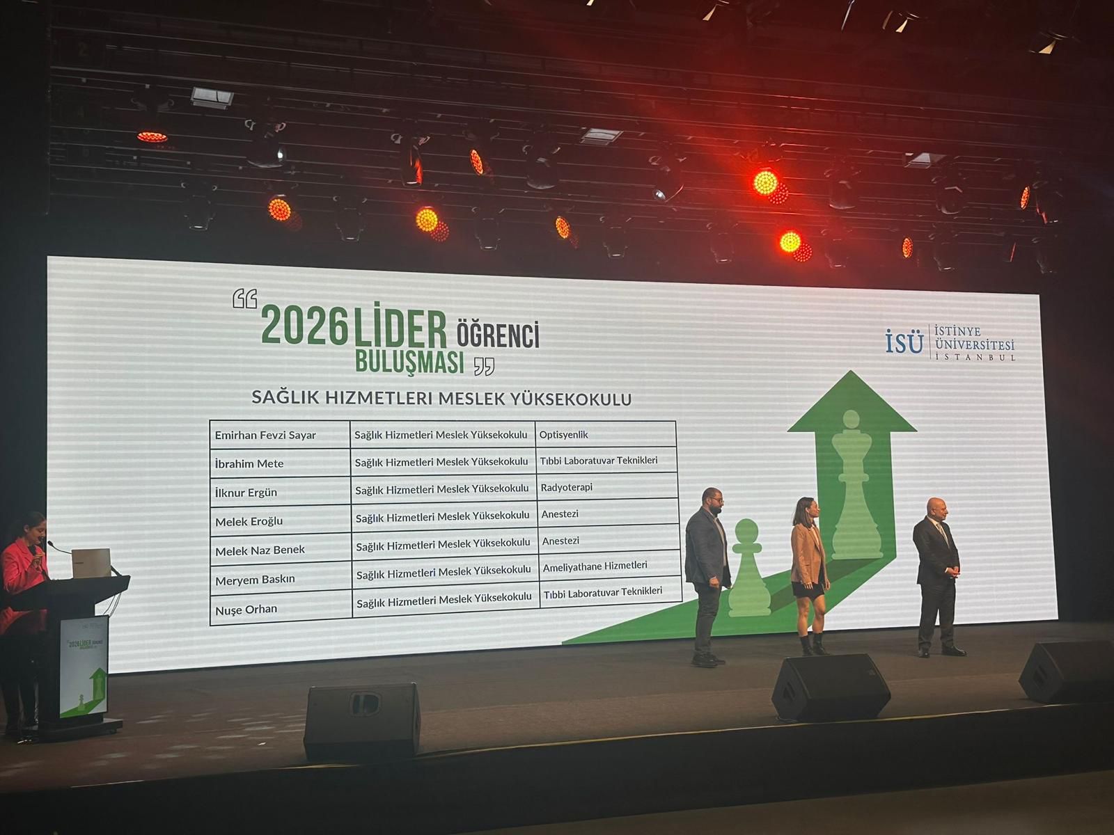 İstinye Üniversitesi’nde “2026 Lider Öğrenci Buluşması” Kapsamında Lider Öğrenci Programı Kabul Belgesi Takdim Töreni Gerçekleştirildi. İstinye Üniversitesi tarafından yürütülen Lider Öğrenci Programına katılmaya hak kazanan öğrenciler için kabul ve belge takdim töreni gerçekleştirildi. Program kapsamında seçilen öğrencilere kabul belgeleri; SHMYO Müdür Yardımcısı Dr.Öğr. Üyesi Sayın Orkun Gürbüz, Lider Öğrenci Programı Koordinatörü Öğr.Gör. Sayın Atiye Türker ve Rektörümüz Sayın Prof.Dr. Erkan İbiş tarafından takdim edildi.