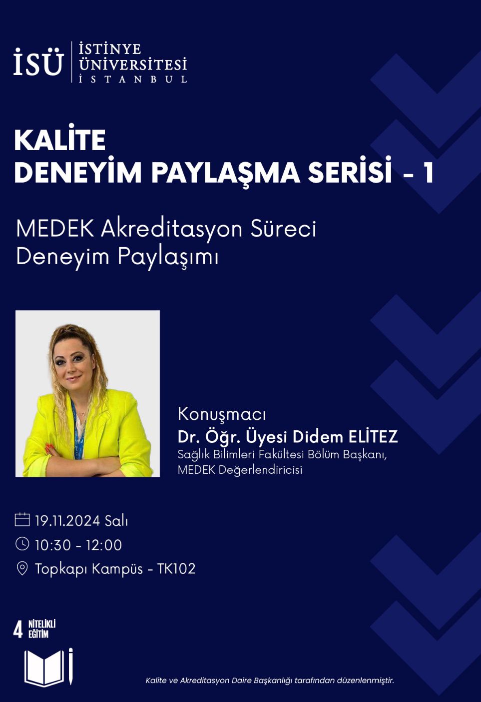 MEDEK Akreditasyon Süreci deneyim paylaşımı toplantısı 19.11.2024 tarihinde Sayın Dr. Öğr. Üyesi Didem ELİTEZ hocamızın sunumu ile gerçekleştirilmiştir. Hocamıza katkılarından dolayı teşekkür ederiz.
