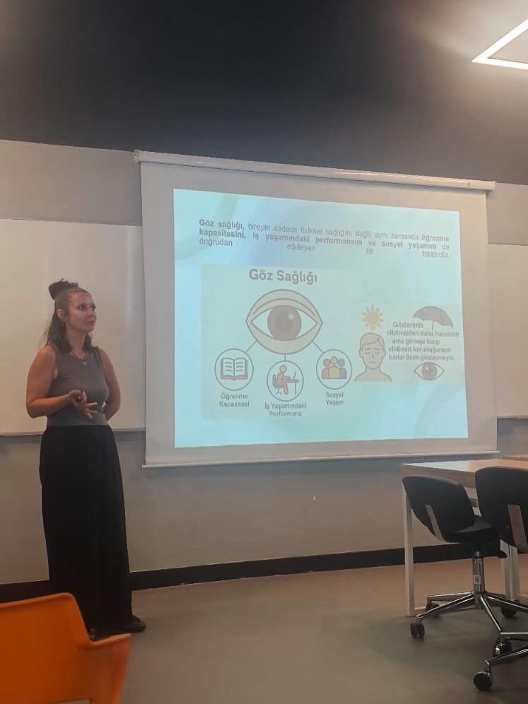 Toplantımızda değerli hocamız Öğr. Gör. Bilgen Şimşek “Gözümüzü koruyor muyuz, kandırıyor muyuz?” başlıklı sunumunu gerçekleştirmiş ve bizlerle tecrübelerini paylaşmıştır.