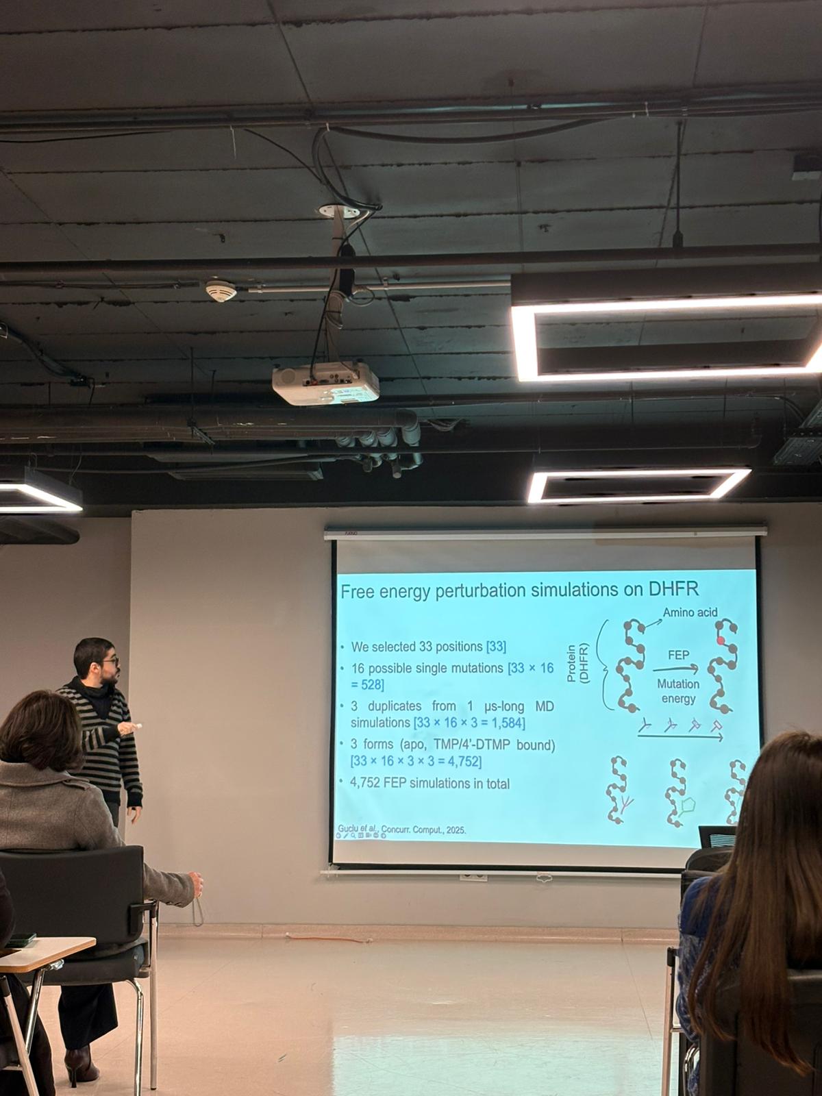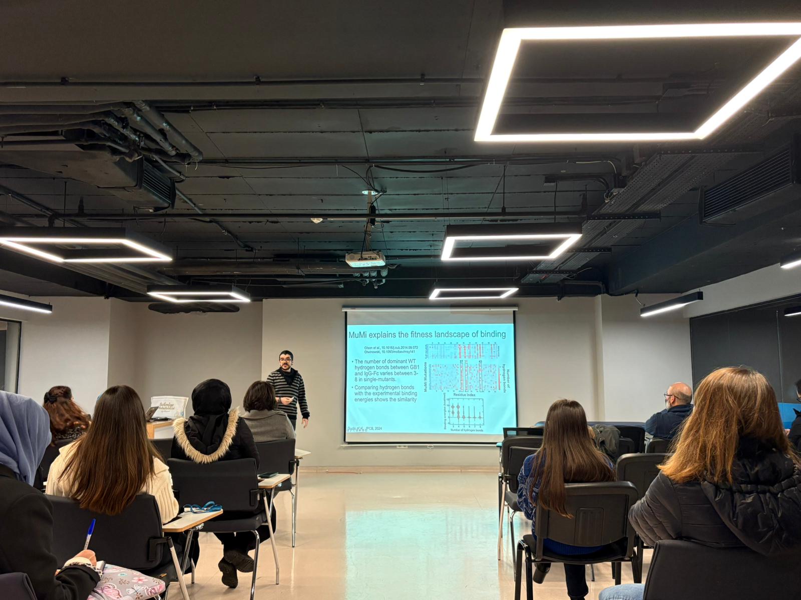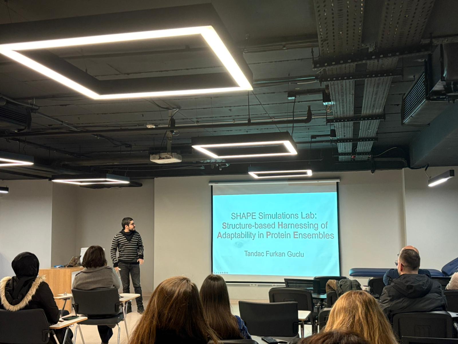 Toplantımızda, değerli hocamız Dr.Öğr. Üyesi Tandaç Fürkan Güçlü "SHAPE Simulations Lab: Structure-based Harnessing of Adaptability in Protein Ensembles" başlıklı sunumunu gerçekleştirmiş ve bizlerle tecrübelerini paylaşmıştır.