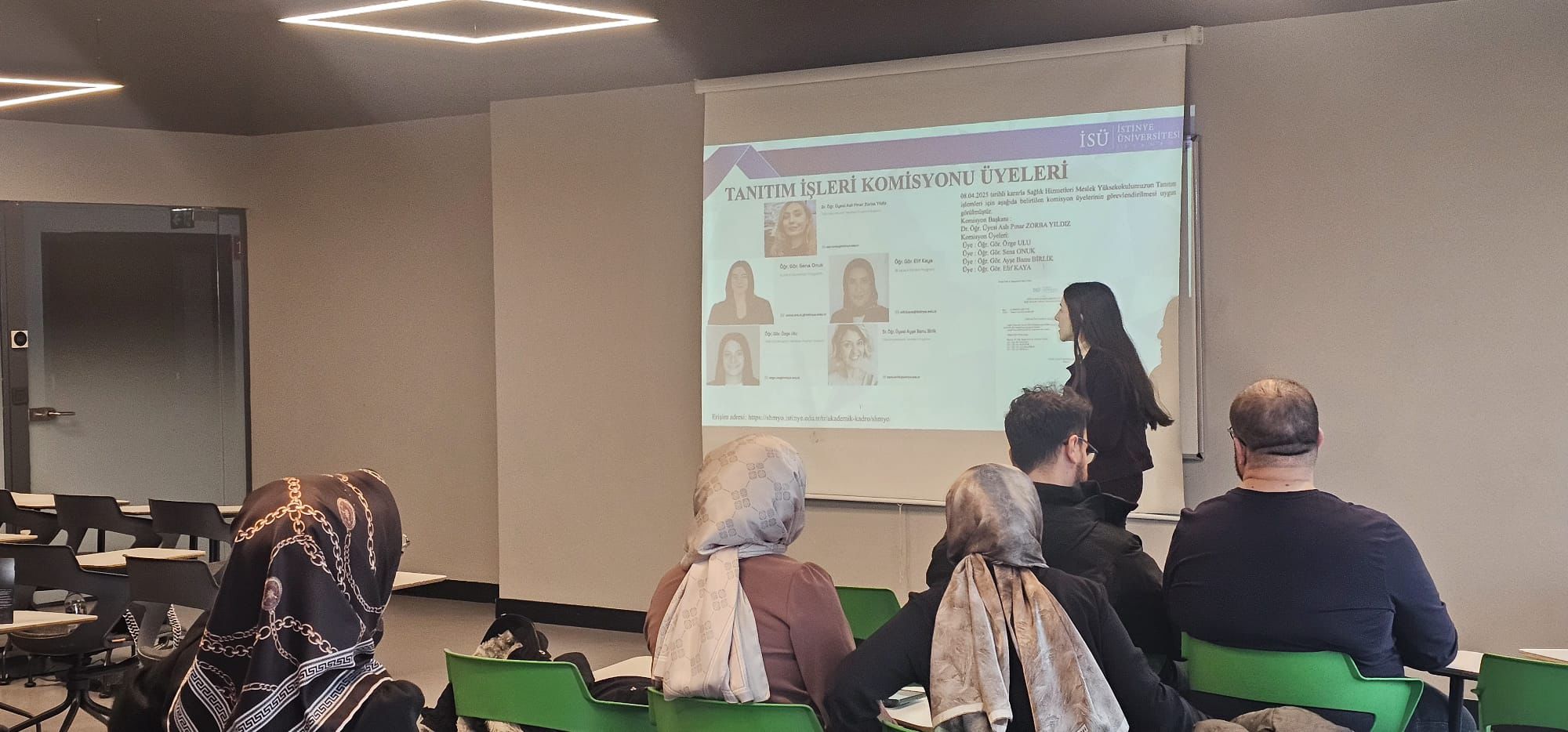 10.02.2026 tarihinde Sağlık Hizmetleri Meslek Yüksekokulu bünyesinde faaliyet gösteren komisyonlara yönelik bilgilendirme toplantısı, idari ve akademik kadromuzun katılımıyla gerçekleştirilmiştir. Toplantıda kalite güvence sistemi çerçevesinde akademik planlama, program değerlendirme, sürekli iyileştirme ve akreditasyon süreçleri ile komisyonların görev tanımları ele alınmıştır. Eğitim-öğretim faaliyetlerinin niteliğinin artırılmasına yönelik yürütülen çalışmalar değerlendirilmiş; akademik personelimizin aktif katılımı kurumsal kalite kültürünün geliştirilmesine önemli katkı sağlamıştır.