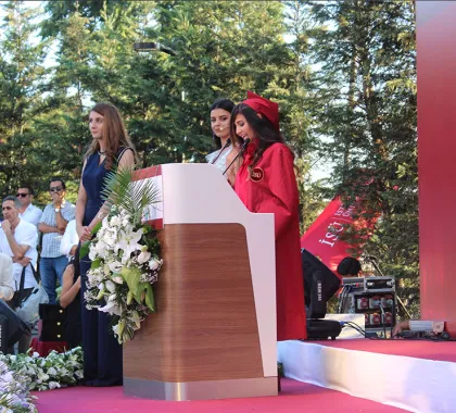 2018-2019 eğitim ve öğretim yılı Tıbbi Laboratuvar Teknikleri Program birincisiyim. Öncelikle bana eğitim hayatımda hayalleriminde ötesinde ve bir o kadar da muhteşem bir ortamda eğitim imkanı sağlayan bu değerli kuruma ve bu kurumu bize kazandıran mütevelli heyeti başkanımız Sn. Dr. Muharrem USTA'ya nezdinde Rektörüm Prof. Dr. Sn. Melih BULU' ya, Müdürüm Dr. Öğr. Üyesi Sn. Yemliha Yıldız ve değerli hocalarıma aynı zamanda maddi ve manevi yardımlarını esirgemeyen değerli aileme ve arkadaşlarıma sonsuz şükranlarımı sunuyorum. 2 yıllık kısa süren eğitim hayatımda okulumuzun bize sağladığı günümüz teknolojisinin sınırsız imkanları ve konusunda uzman ve özverili ile çalışan değerli hocalarım sayesinde birçok bilgi edindiğimi düşünüyorum. Ve bu düşüncelerimde ben de aynı özveri ile iş hayatımda insanlığa faydalı olacağıma inanıyorum. Eğitim hayatını sürdüren ve idealleri olan her öğrenciyi hayallerini gerçekleştirmesi için okulumuza bekliyoruz. "İstinyeli Yetişir Dünya Değişir."