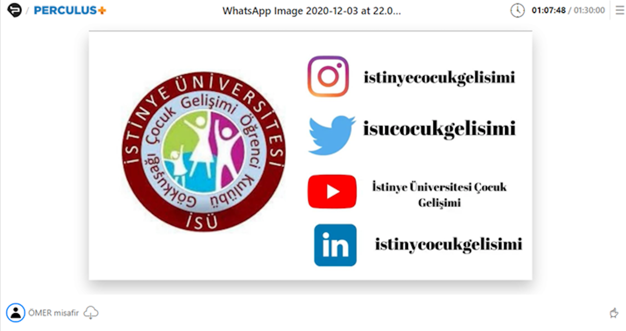 İstinye Üniversitesi Gökkuşağı Çocuk Gelişimi Kulübü, 3 Aralık 2020 tarihinde İsü perculus sistemi üzerinden saat 21.00’de, Radyo Sinema Televizyon Bölüm Başkanı Doç. Dr. Aybike Serttaş ile 3 Aralık Dünya Engelliler Gününün önemine dikkat çekmek adına 290 öğrencinin katılımıyla “Medyada Engelli Çocukların Temsili” konulu konferansı gerçekleştirmiştir.