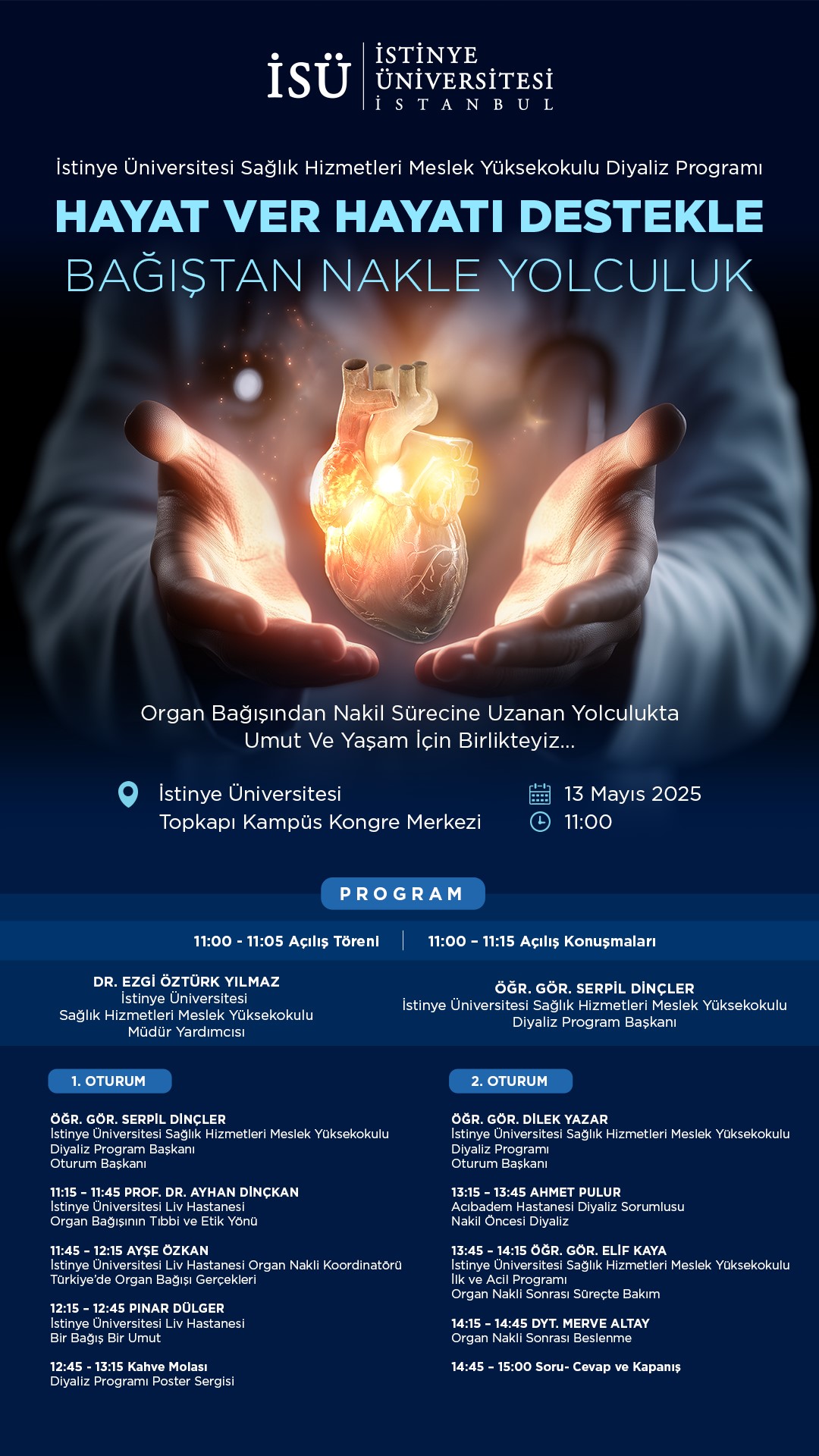 İstinye Üniversitesi Sağlık Hizmetleri Meslek Yüksekokulu bünyesinde yer alan Diyaliz Programı, 2017-2018 akademik yılında eğitim-öğretim faaliyetlerine başlamıştır. Programın temel amacı, diyaliz tedavisi gerektiren hastalıklarda, hastanın diyaliz makinesine alınması, takibi ve tedavisi, diyaliz işlemlerinin sonlandırılması, diyaliz makinesinin bakımının yapılması aşamalarında, diyaliz ünitelerinde çalışacak yetkin ve donanımlı diyaliz teknikerleri yetiştirmektir.