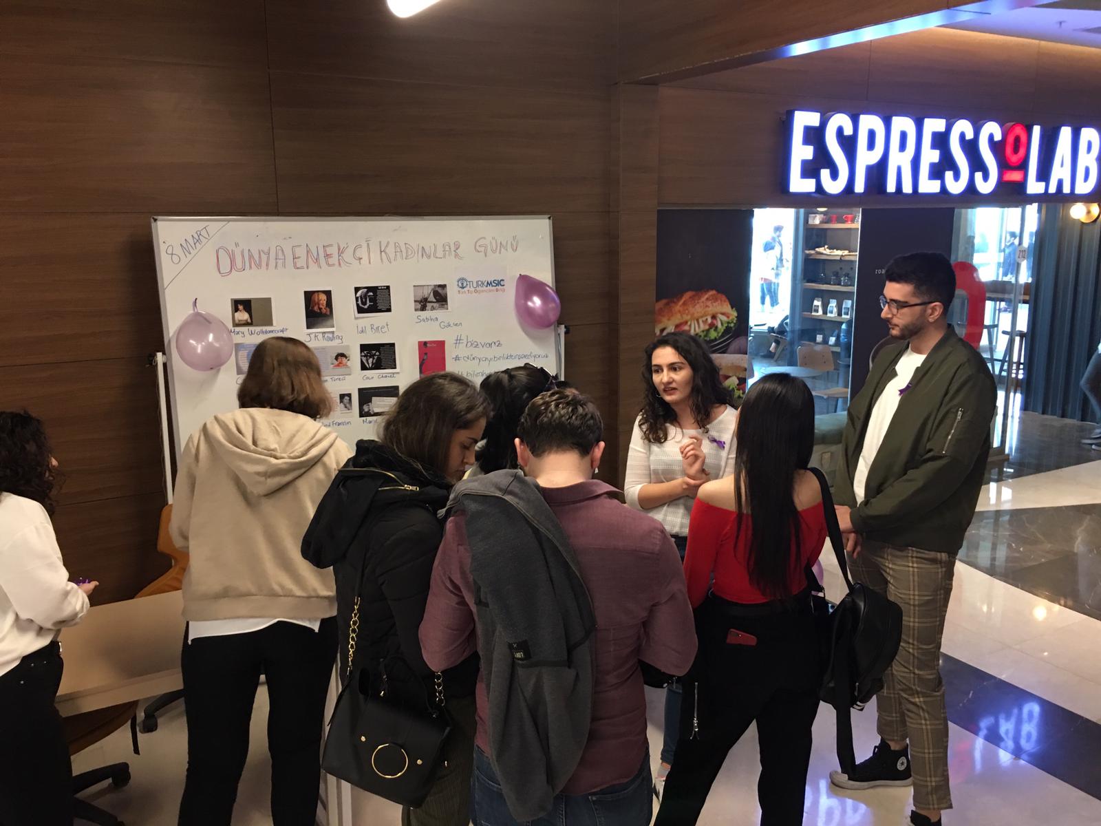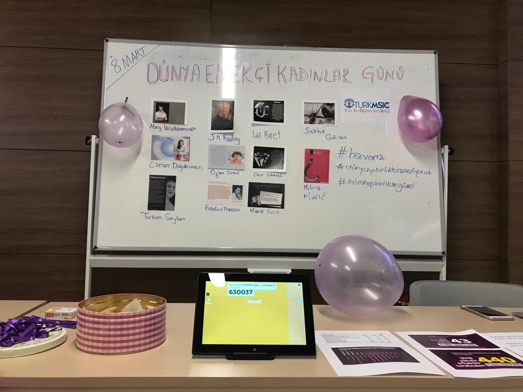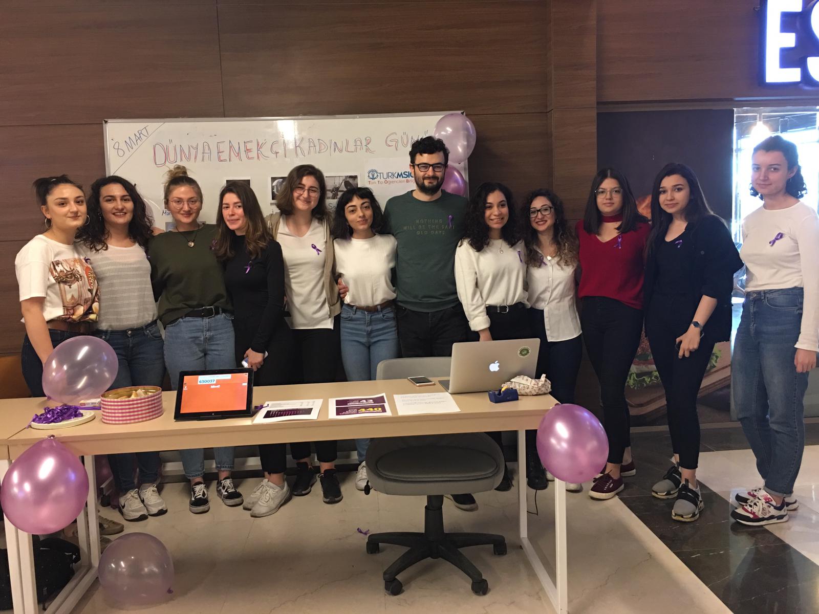 İstinye Tıp Öğrencileri Birliği(Turkmsic) 8 Mart Dünya Emekçi Kadınlar Günü’nde arka fonda güzel müziklerin de olduğu bir stand açıp insanlarla kadınlar günü, kadın hakları, kadın olmanın zorlukları ve güzellikleri, toplumsal hayatta kadının yeri üzerine standa gelen ziyaretçiler ile bilgilendirici sohbetler etti. Bir haftadır sosyal medyadan Dünya’da ve Türkiye’de bilim kadınları, sanatçılar,yazarlar,iş kadınları üzerine postlar hazırlayıp paylaşmışlardı. Stand etkinliğinde de bu postlardaki bilgilerden oluşan bir yarışma yapıp kurabiye dağıttı.