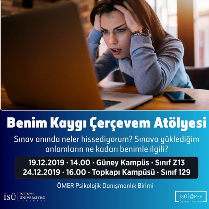 19 Aralık 2019 ve 24 Aralık tarihlerinde Topkapı Kampüsü ve Güney Kampüsündeki öğrencilerimizle dersliğinde ‘’ Benim Kaygı Çerçevem ‘’ atölyesi gerçekleştirilmiştir.