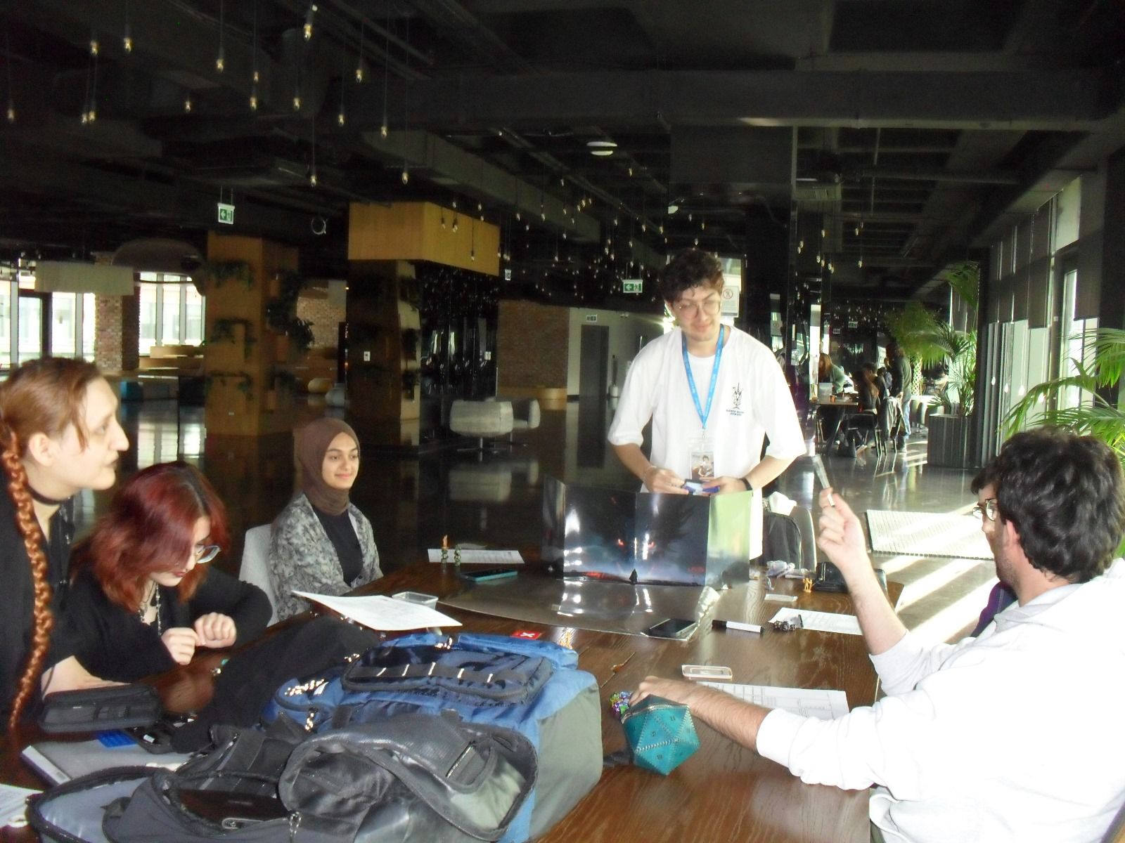 Bilgilendirme sunumunun ardından etkinliğin en heyecanlı kısmı olan oyun deneyimi gerçekleşti. Öğrenciler, oluşturdukları karakterlerle masa etrafında bir araya gelerek hikâye odaklı bir maceraya katıldı. Bu bölümde, takım çalışması, yaratıcılık, problem çözme ve doğaçlama becerileri ön plana çıkarken katılımcılar FRP’nin eğlenceli ve sürükleyici atmosferini birebir deneyimledi.