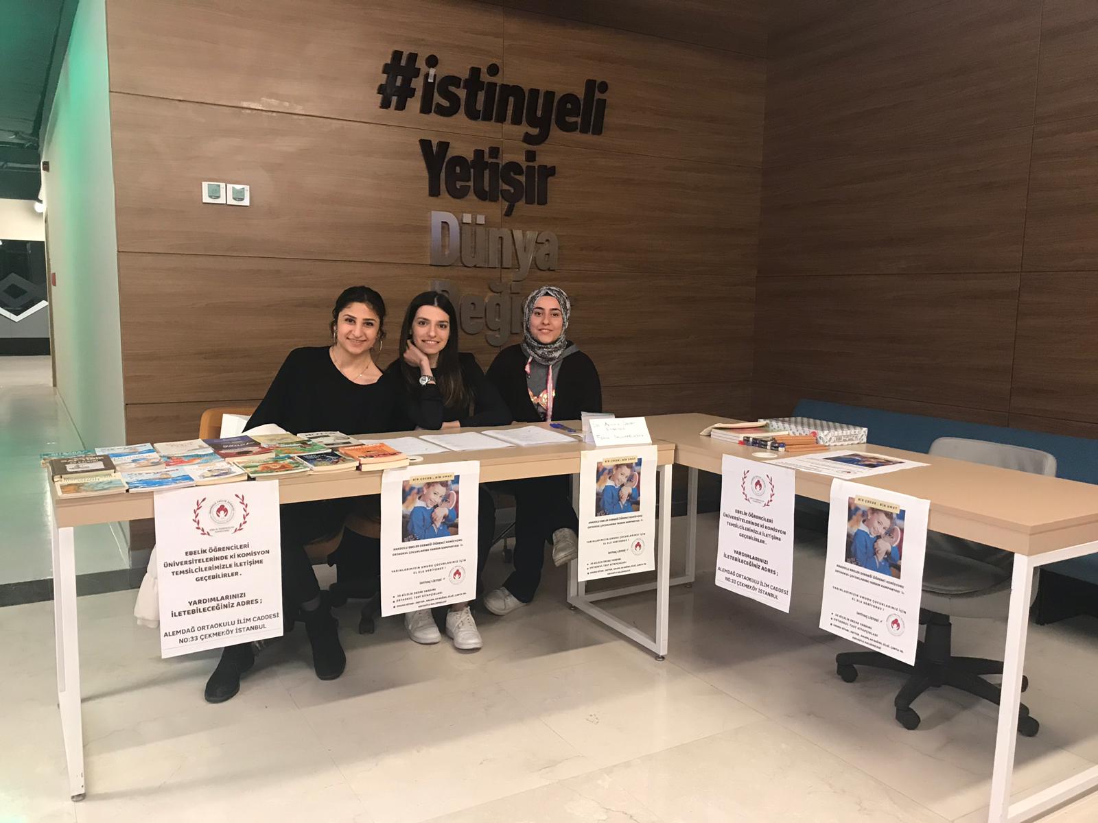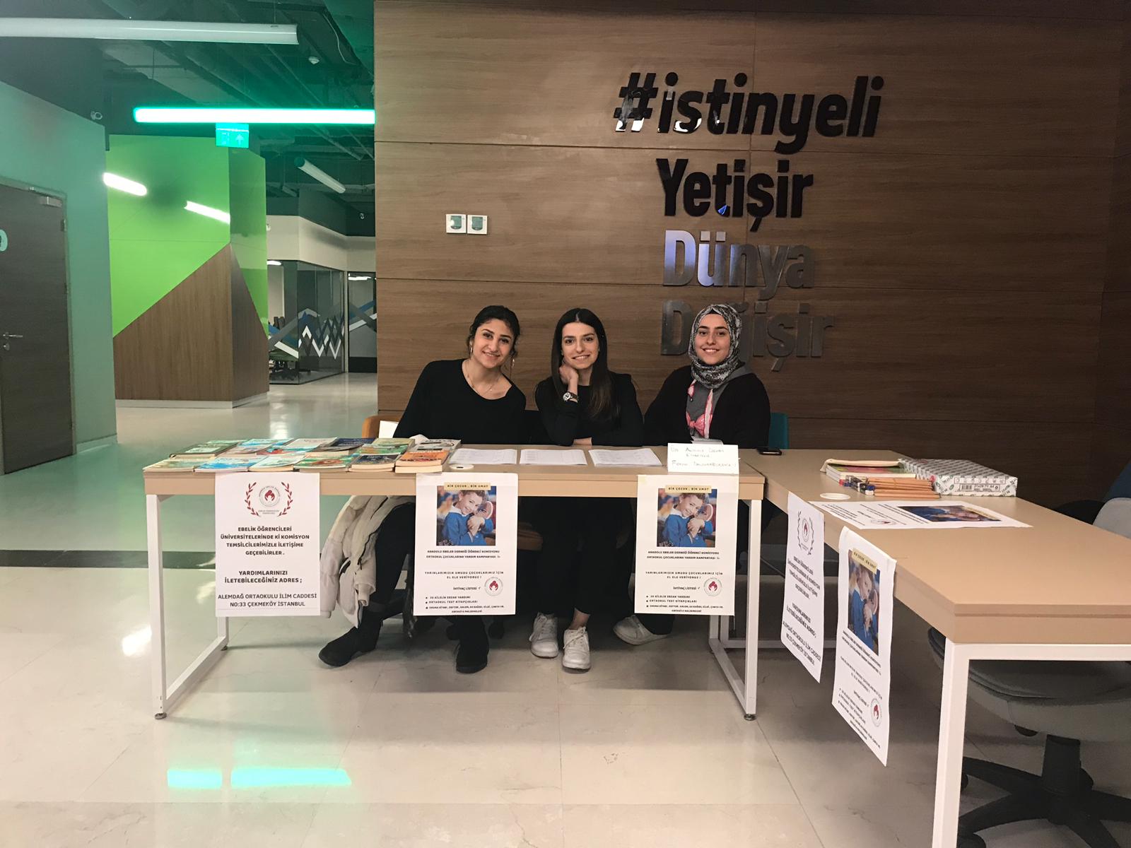İstinye Üniversitesi Ebelik Kulübü 28.03.2019-04.04.2019 tarihleri arasında İstinye Üniversitesi Öğrenci Merkezi (ÖMER) Stand Alanında Çekmeköy Alemdağ Ortaokulu için yardım kampanyası başlattı.