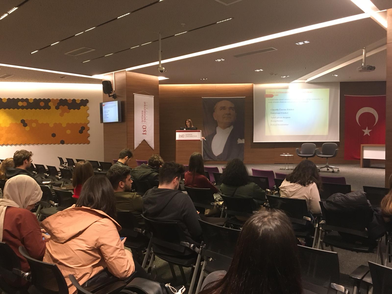 İSÜ TURKMISC KUlübü, 11.03.2019 tarihinde Konferans Salonu 2'de düzenlenen "Çocuk Cinsel İstismar ve İhmali Farkındalık" konulu etkinlikte, Çocuk Psikiyatristi üniversitemiz Öğretim Üyesi Prof. Dr. Seher AKBAŞ cinsel istismara uğrayan çocuklarda görülen fiziksel ve psikolojik bulgular, istismarın en sık görüldüğü yaş aralığı, muayene sırasında çocuğa nasıl yaklaşılması gerektiği, istismar şüphesi uyandırabilecek bulgular, adli süreç ve sarsılmış bebek sendromu gibi konular ele alındı.