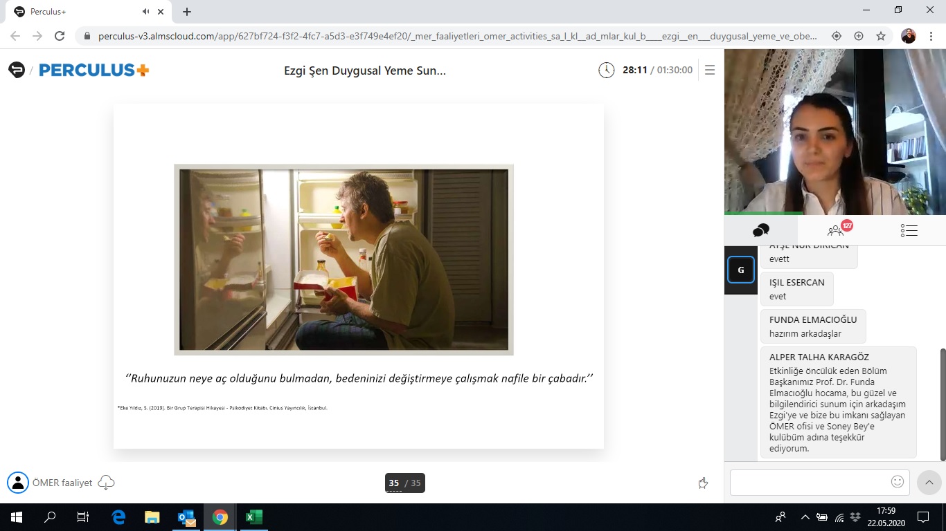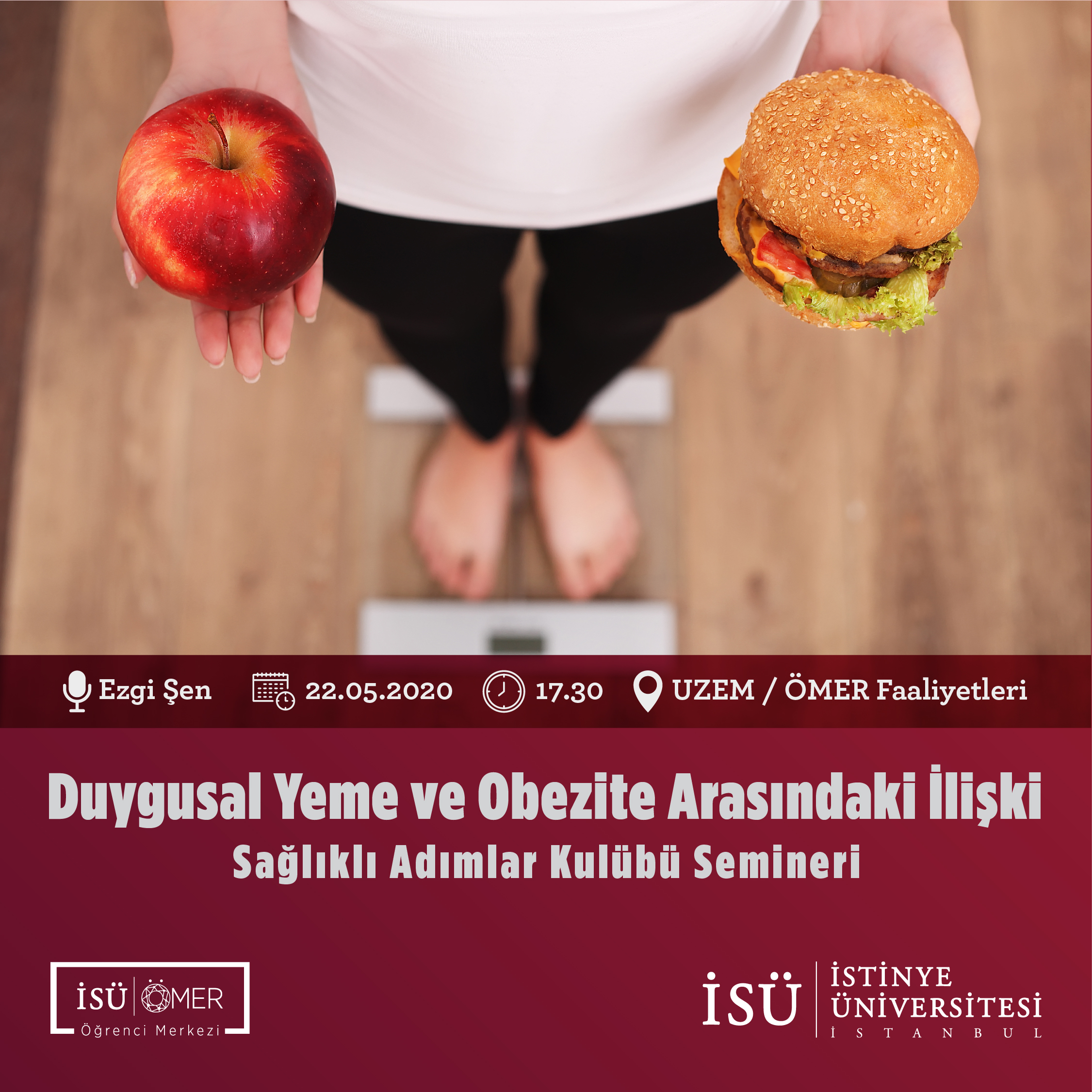 Sağlıklı Adımlar Kulübü tarafından 22.05.2020 tarihinde gerçekleşen Duygusal Yeme ve Obezite Arasındaki İlişki semineri, Ezgi Şen'in sunumuyla gerçekleştirildi