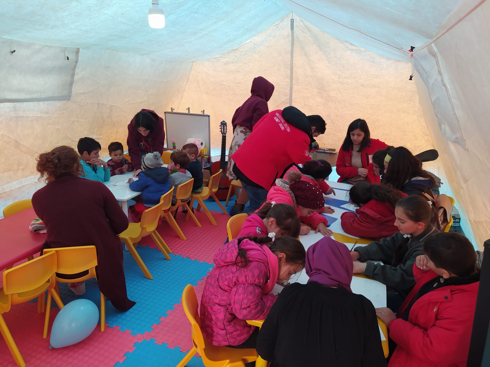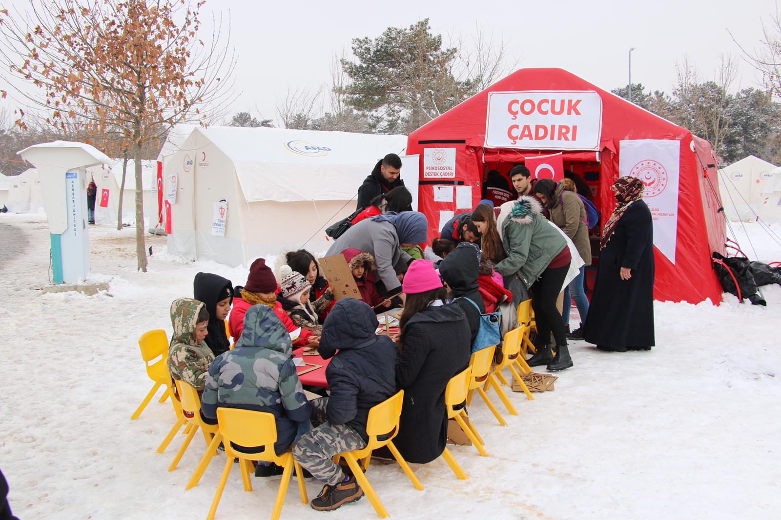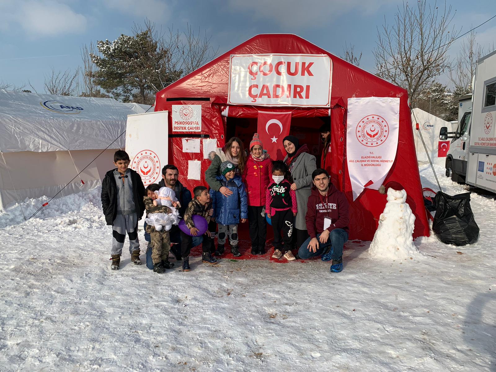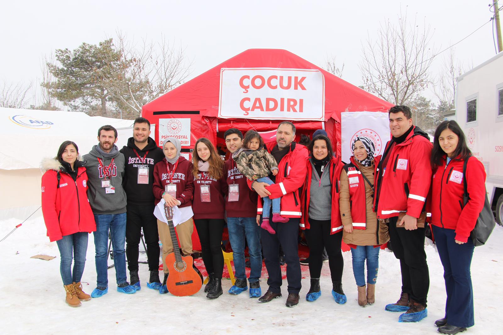 İstinye Üniversitesi Öğrenci Merkezi (ÖMER) koordinasyonunda 11 öğrencimiz ve idari personelimiz Elazığ’da sahada çocuklara verilen psikososyal destek çalışmalarına destek olmak üzere bölgedeydi. Elazığ Aile Çalışma ve Sosyal Hizmetler İl Müdürlüğü işbirliğinde gönüllü olarak çalışan öğrencilerimiz, çocuk çadırlarında çeşitli atölye çalışmaları gerçekleştirdi. Atölye çalışmaları deprem mağduru çocuklar tarafından ilgi ve sevgiyle karşılandı. Bölgede destek amaçlı bulunan çeşitli gruplarla diyaloglar kuran istinyeliler, AFAD yetkililerinden hem Elazığdaki son durum hakkında bilgi aldı, hem de deprem ve afet yönetimi konulu bir eğitim gerçekleştirdi.