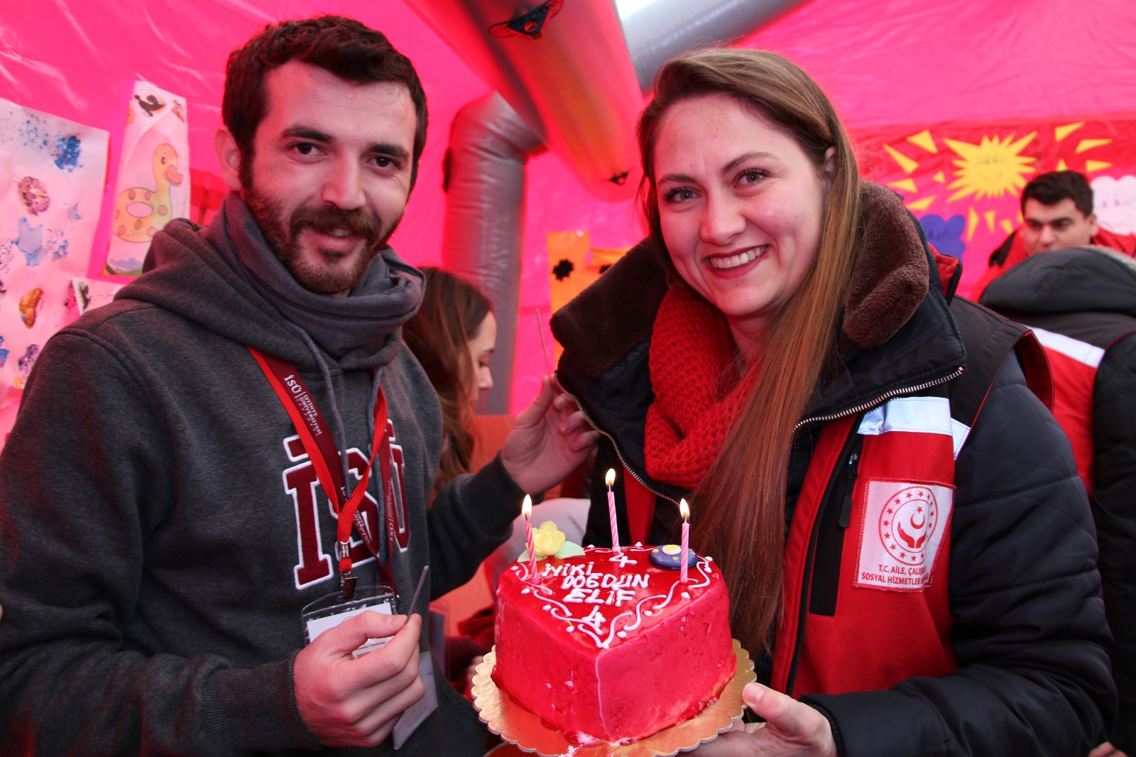 Deprem mağdurlarına destek olmak için yola çıkan gönüllü İstinyeliler Elazığ’da çadırda yaşayan çocuklara hem psikolojik hem de manevi destek verdi. Gönüllü öğrencilerimiz depremden hemen sonra Elazığ’a gitmek istemişti ancak AFAD’ın çağrıları üzerine öncelikle ihtiyaç duyulan malzemelerle ilgili destek topladı ve 128 koli yardım malzemesini Elazığ’da ihtiyaç sahiplerine ulaştırdı. Bu destek kampanyasının ardından şimdi de gönüllü öğrenci ve çalışanlarımız Elazığ’daydı.