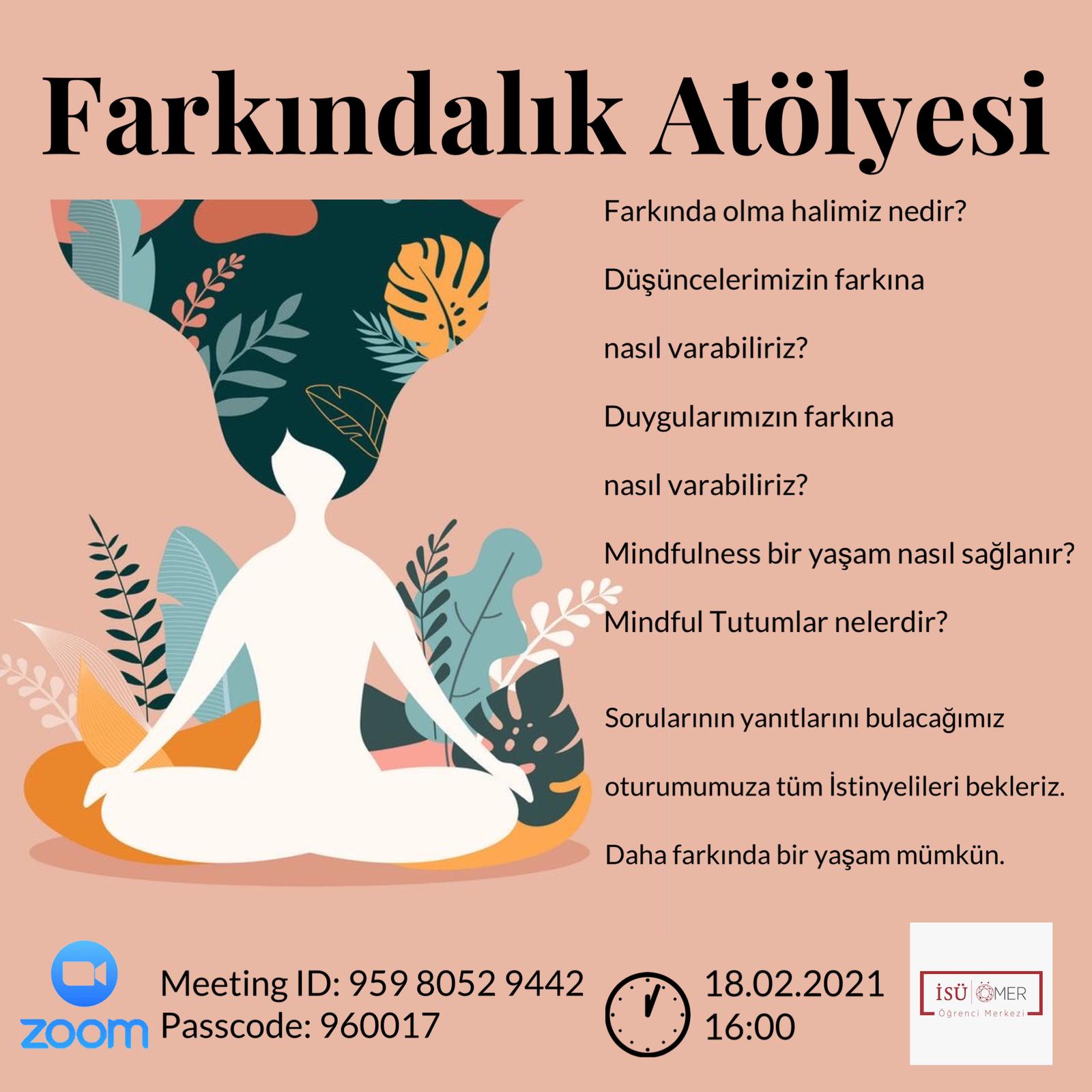 Farkında olma halimiz nedir? Düşüncelerimizin farkına nasıl varabiliriz? Duygularımızın farkında nasıl varabiliriz? Mindfulness bir yaşam nasıl sağlanır? Mindful tutumlar nelerdir? sorularını yanıtladığımız oturumumuzu gerçekleştirdik.