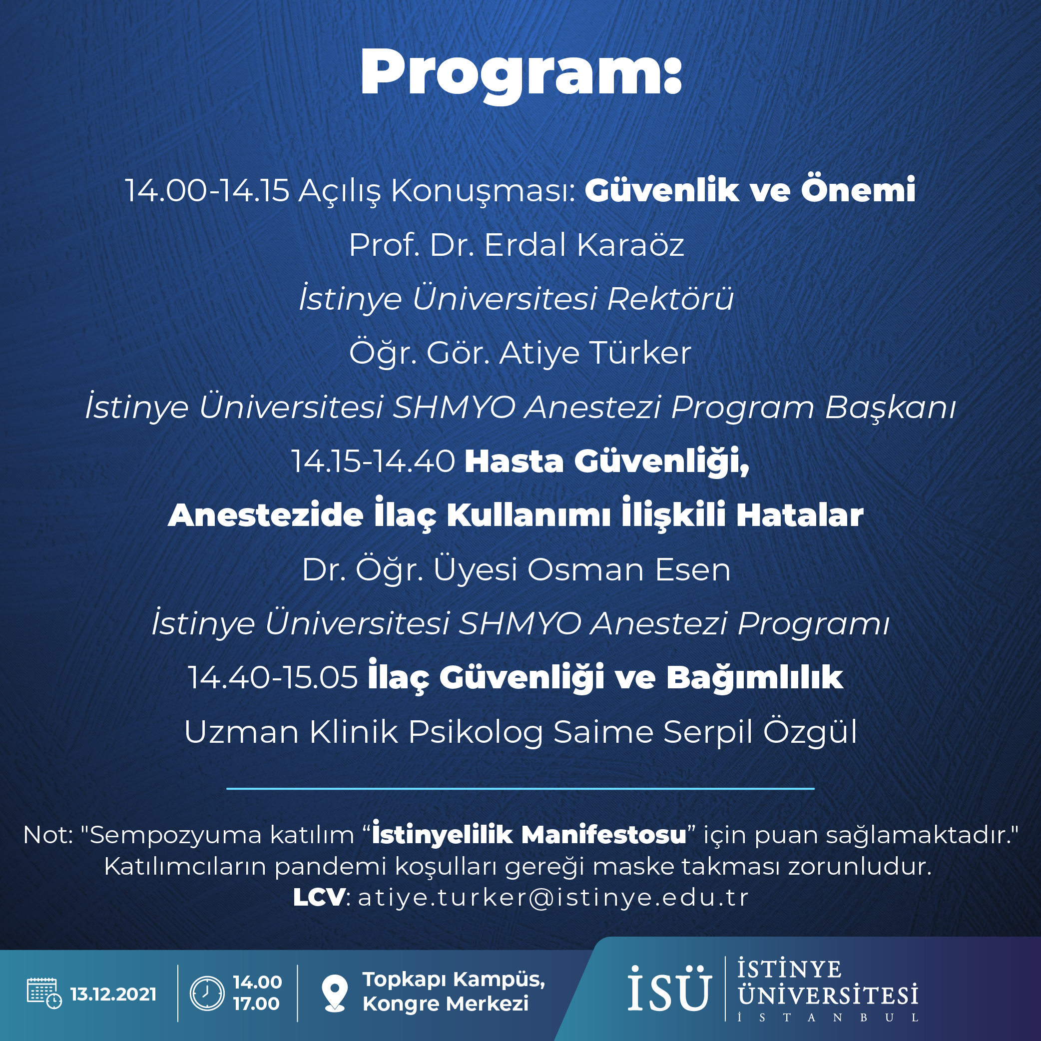 Anestezi Programı tarafından gerçekleştirilecek olan 13 Aralık Anestezi Teknikerleri Gününe özel Anestezi Teknikerleri Sempozyumunda Psikolojik Danışmanlık Birimi olarak "İlaç Güvenliği ve Bağımlılık" semineriyle yer aldık.