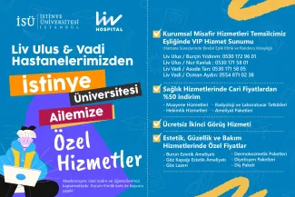 Liv Ulus ve Liv Vadi Hastanelerinden üniversitemiz mensuplarına özel avantajlı sağlık hizmetleri sunulmaktadır: