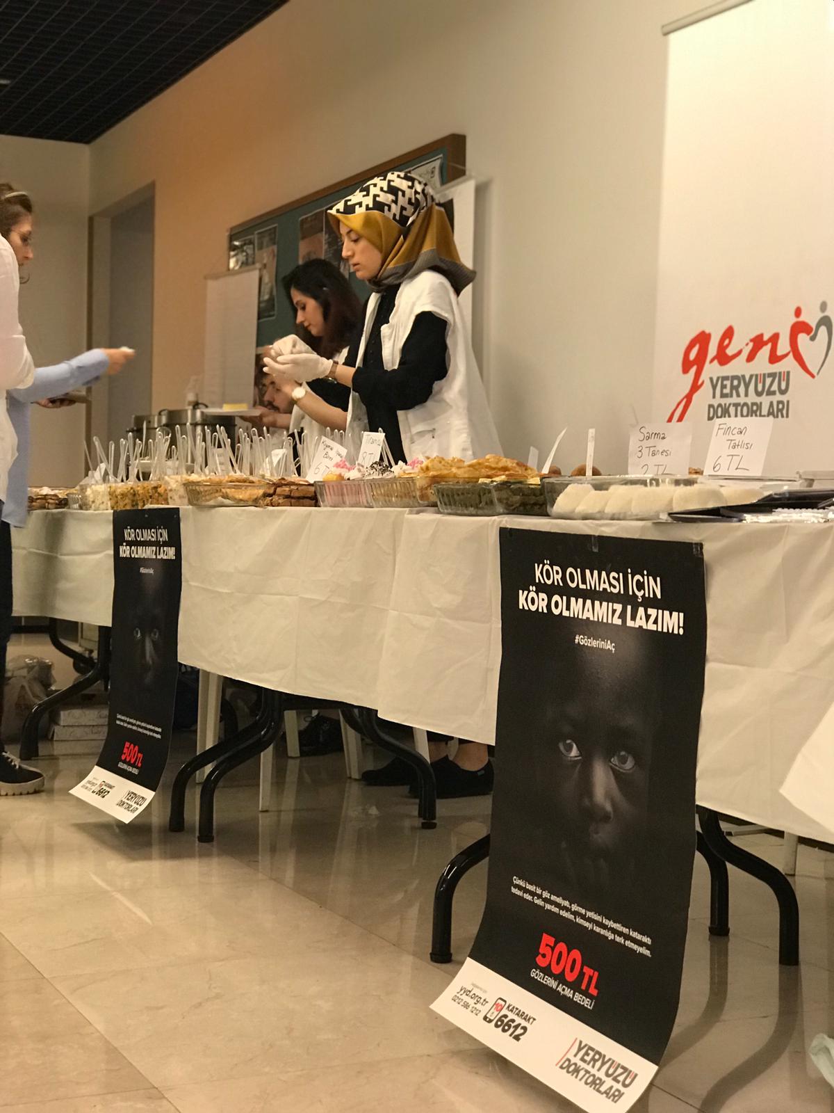 İstinye Üniversitesi Genç Yeryüzü Doktorları Kulübü 2 Mayıs 2019 Perşembe günü Afrika'nın birçok ülkesinde gerçekleşmekte olan katarakt ameliyatları için oluşturulan fona bağışta bulunmak üzere yemekhane ana giriş bölümünde yoğun katılımlı bir kermes gerçekleştirdi.