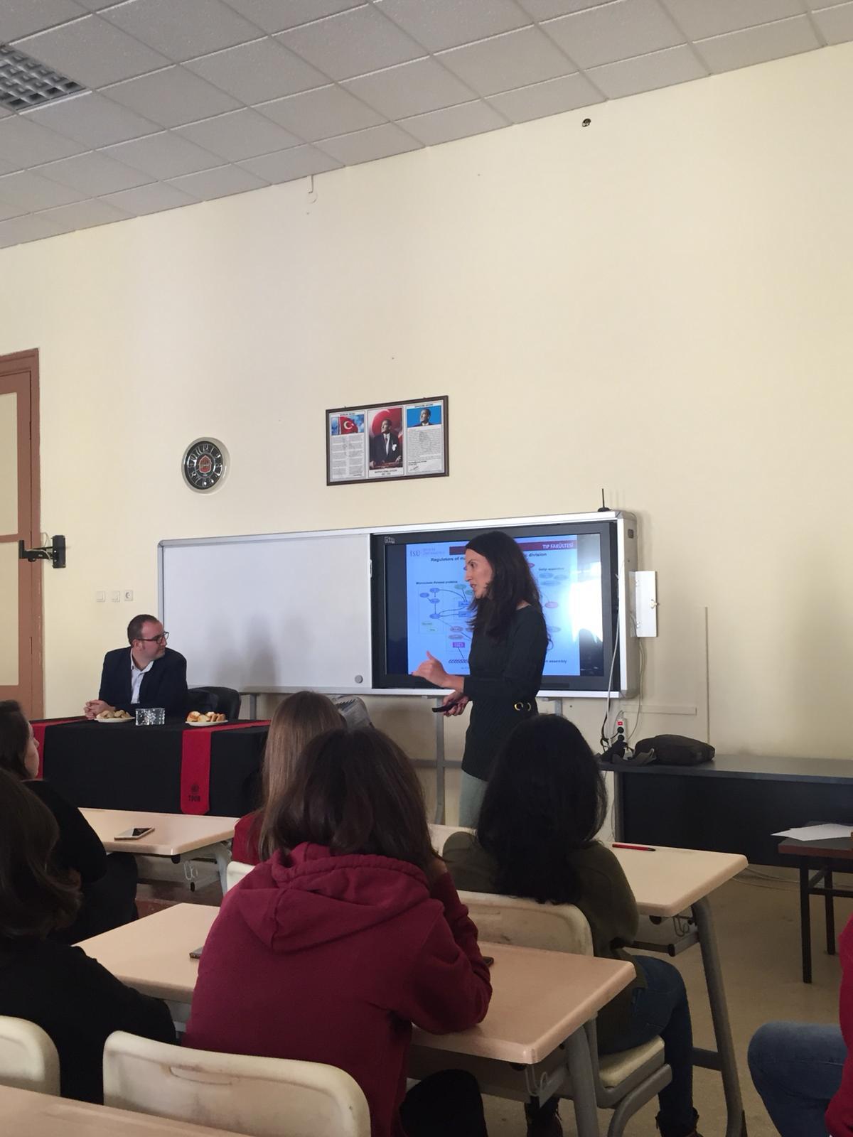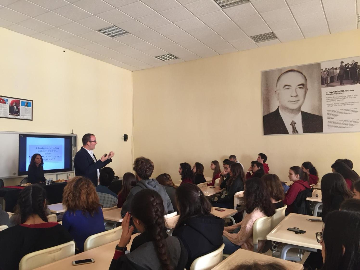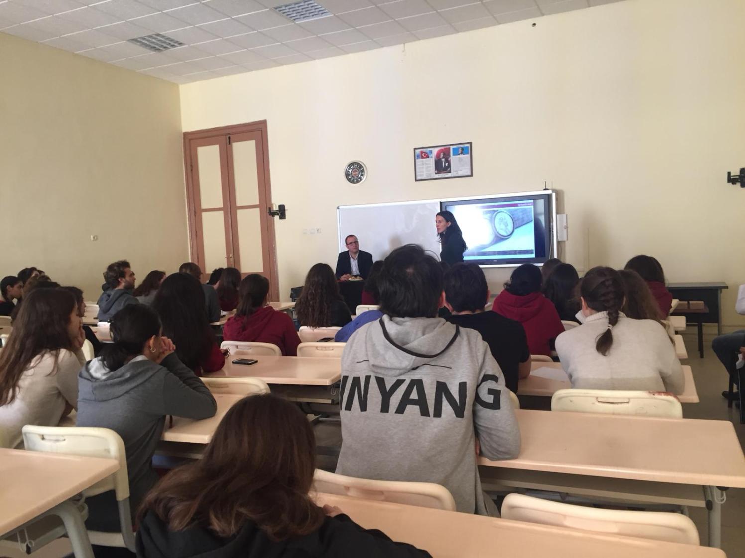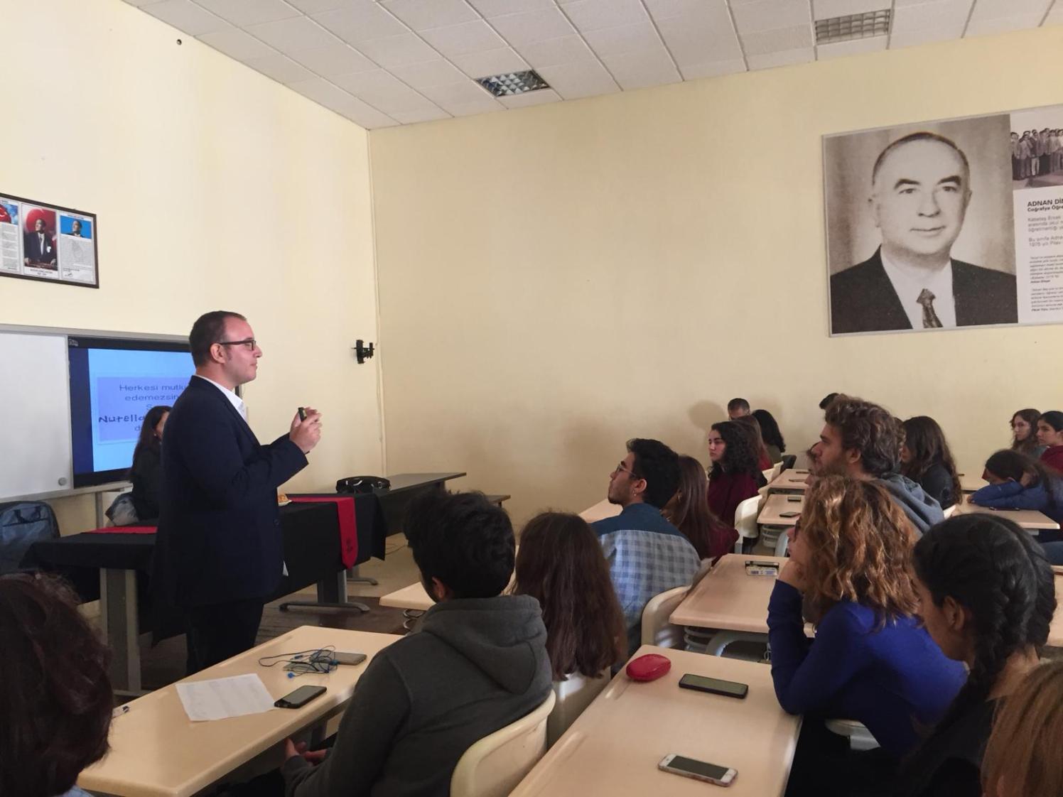 25 Ekim perşembe günü saat 11.15'te Adnan Dinçer Konferans Salonu'nda  (Kabataş Erkek Lisesi) okulumuz Dr. Öğretim Üyesi Filiz Tepeköy ve Kariyer Uzmanı Umur Çalıkoğlu tarafından düzenlenen etkinliğe katılım oldukça yoğundu. Sunumda Tıp Fakültesi öğretim üyesi Sayın Dr. Filiz Tepeköy, laboratuvar araştırma tecrübelerini, Sayın Umur Çalıkoğlu, akademik alandaki etik değerlerle bilim üretmenin inceliklerini Kabataş Erkek Lisesi öğrencileriyle paylaştı.