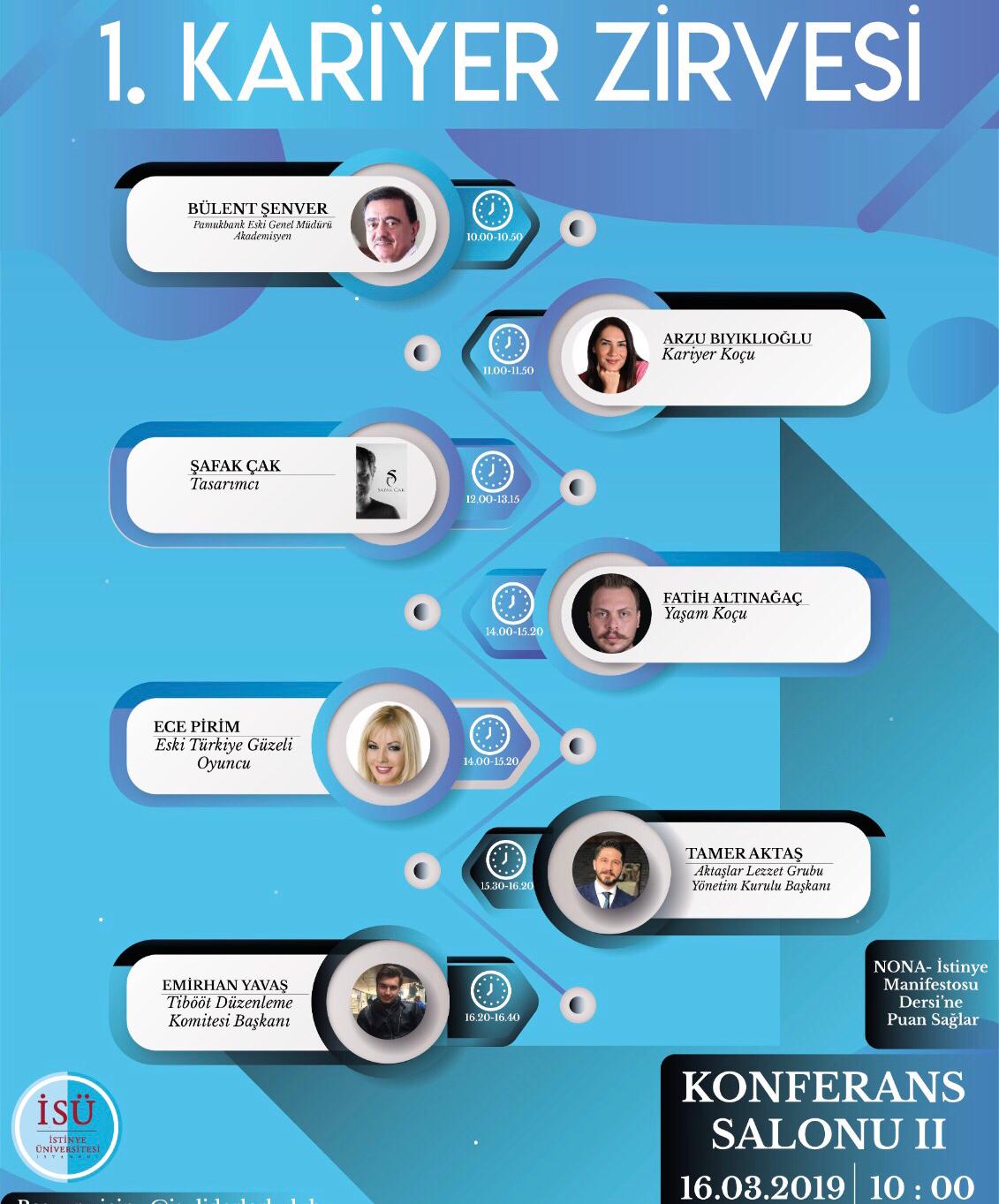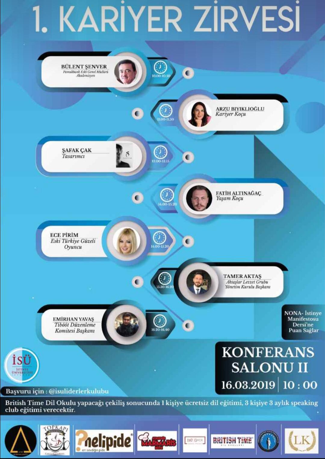İstinye Üniversitesi Liderler Kulübü tarafından birincisini düzenlenen ''Kariyer Zirvesi'', 16 Mart 2019 Cumartesi Günü İstinye Üniversitesi Topkapı Kampüsü'nde gerçekleşti.