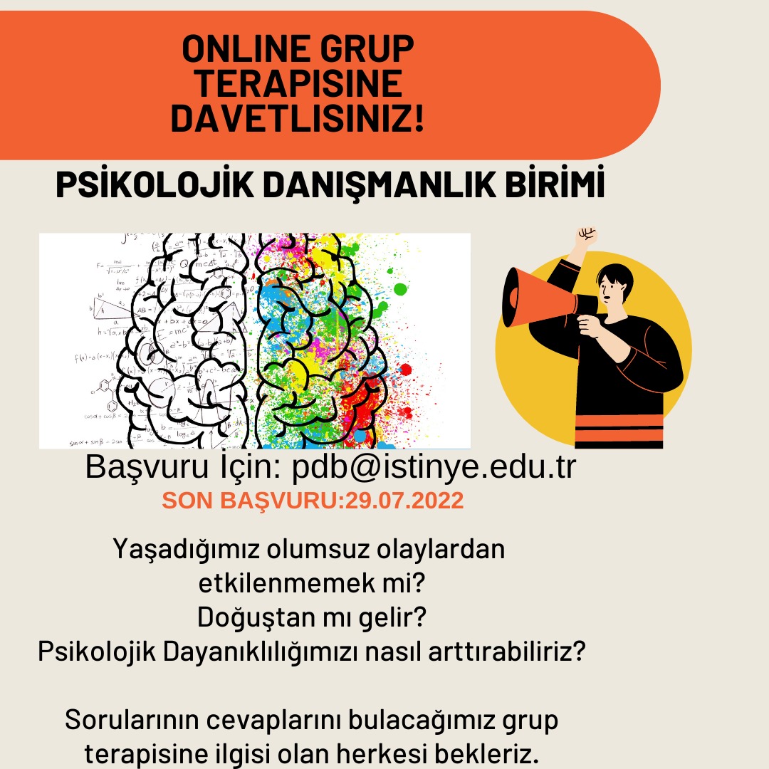 Psikolojik Dayanıklılık nedir? Kendi dayanıklılığımızı nasıl arttırabiliriz? İhtiyacımız olanlar nelerdir? 26 Ağustos cuma günü ilk oturumumuzla birlikte etkinliğimiz baslayacaktır.