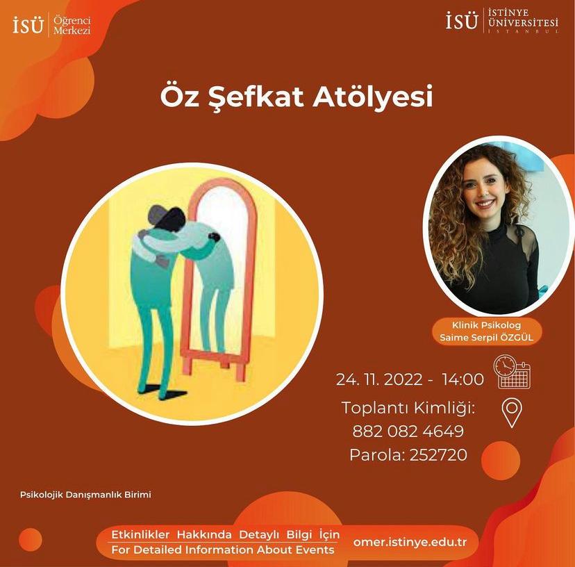 Yardım etme arzusu ile ilişkilendirilen sıcak ve güçlü bir empati hissi olan şefkati kişinin kendisine yönelik hissetmesi ve göstermesine öz şefkat denir. Psikolojik Danışmanlık Birimi olarak Öz Şefkat Atölyemizi 20 öğrencimizin katılımıyla gerçekleştirdik.