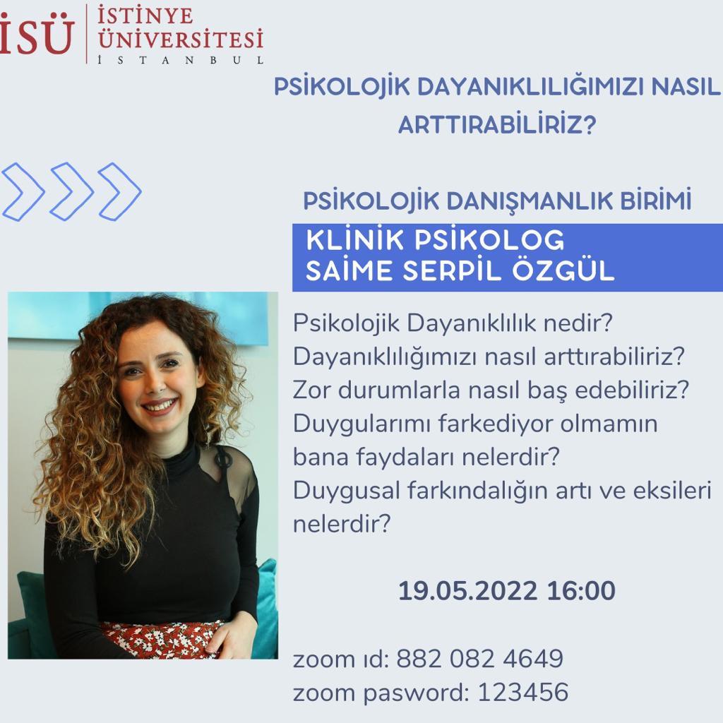 Hayatımızdaki olaylar devam ederken, stresli hayat yaşamında işlevselliğini koruyabilmeye psikolojik dayanıklılık diyoruz. Peki durumlardan etkilenmemek mi? Hayır. Etkilenmemek, üzülmemek, ağlamamak demek değil. Psikolojik dayanıklılık esneyebilmektir. Sert olan şeyler kırılmaya daha yatkındır ancak, kişi içsel olarak esneyebildiğinde kırılma olmaz. Hayatta getirdiklerini yaşar. ‘’Ama ben güçlü olmalıyım’’ Güçlü olmak demek orada zorlanmamak etkilenmemek değildir. Fark edip esneyebilmek ve duruma uygun geri dönüşler verebilmektir. Zorlandığımız yerlerden fark ettiğimizde güçlü noktalarımız doğacaktır.