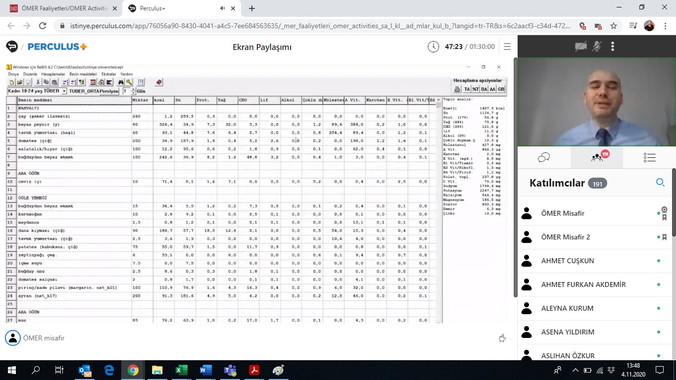 Beslenme ve Diyetetik Öğrencilerinden oluşan Sağlıklı Adımlar Kulübü üyeler, 4 Kasım 2020 tarihinde, BeBİS sistemini uzmanından dinledi.