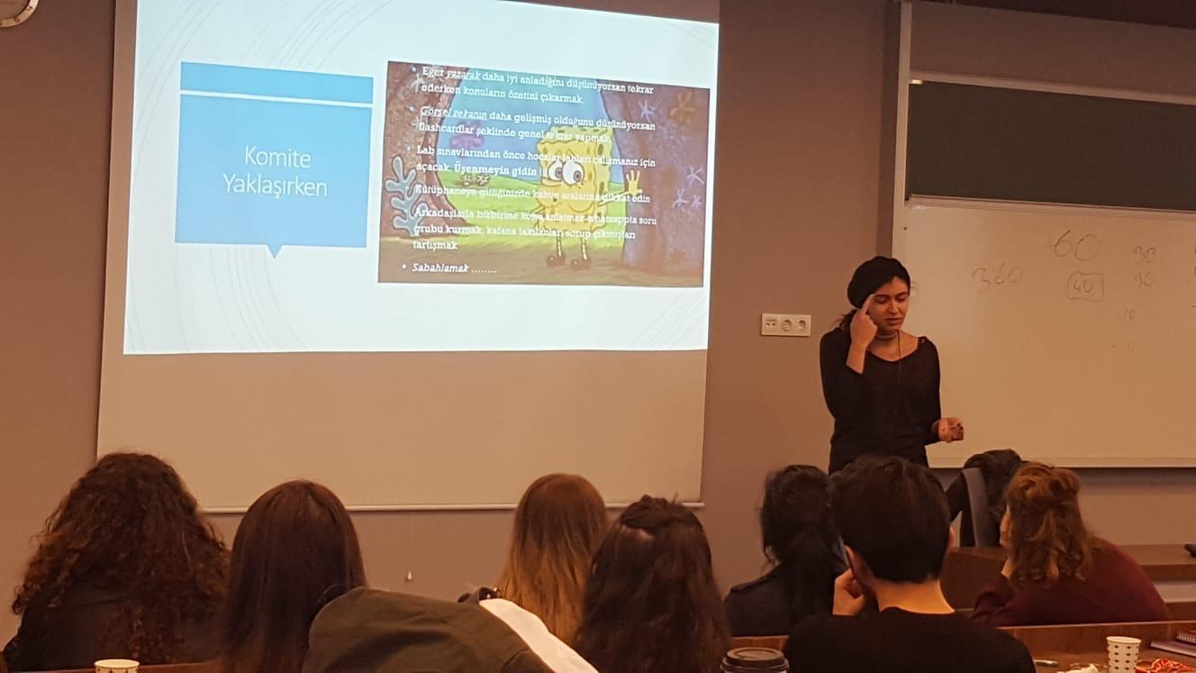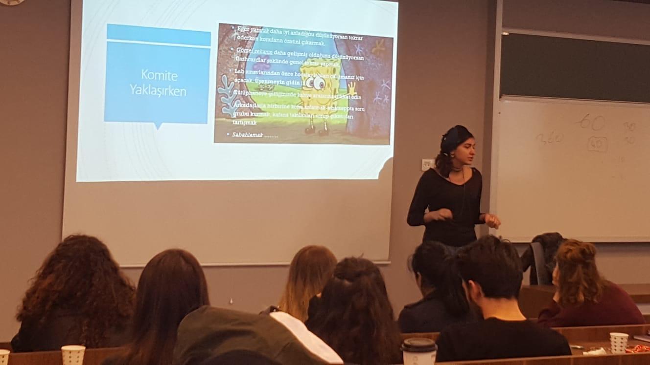 TURKMISC Kulübü, 135 nolu sınıfta 26 Ekim Cuma günü saat 13.00'te Dönem 1 öğrencilerine yönelik "Nasıl ders çalışılır?" ve "Tecrübe Aktarımı" temalı etkinlik gerçekleştirildi. Soru cevap şeklinde ilerleyen etkinlikte Dönem 2 öğrencileri de kendi tecrübelerinden bahsetmek amacıyla etkinliğe katılım gösterdi.