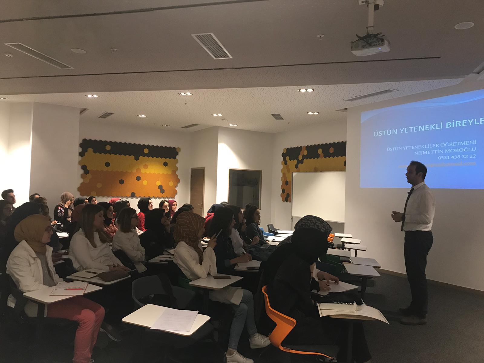 İSÜ Gökkuşağı Çocuk Gelişimi Kulübü, 06.05.2019 tarihinde 13.00 -14.30 saatleri arasında Üstün Yetenekli Çocukların Fark Edilmesi ve Eğitimi konulu konferans Özel Eğitim Öğretmeni olan Nejmettin MOROĞLU'nu ağırladı.