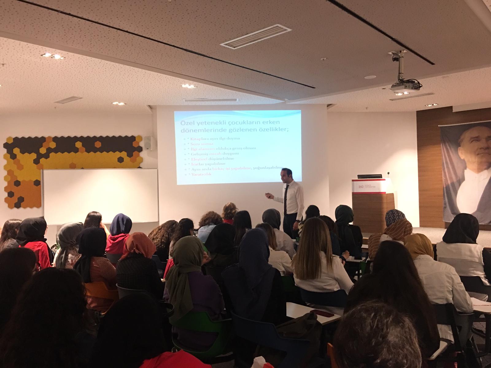 Konferansta üstün yetenekli çocukların nasıl fark edildiğini, nasıl destek programları hazırlanabileceğini ve ailelerin üstün yetenekli çocuklarına karşı tutumlarına değinildi.