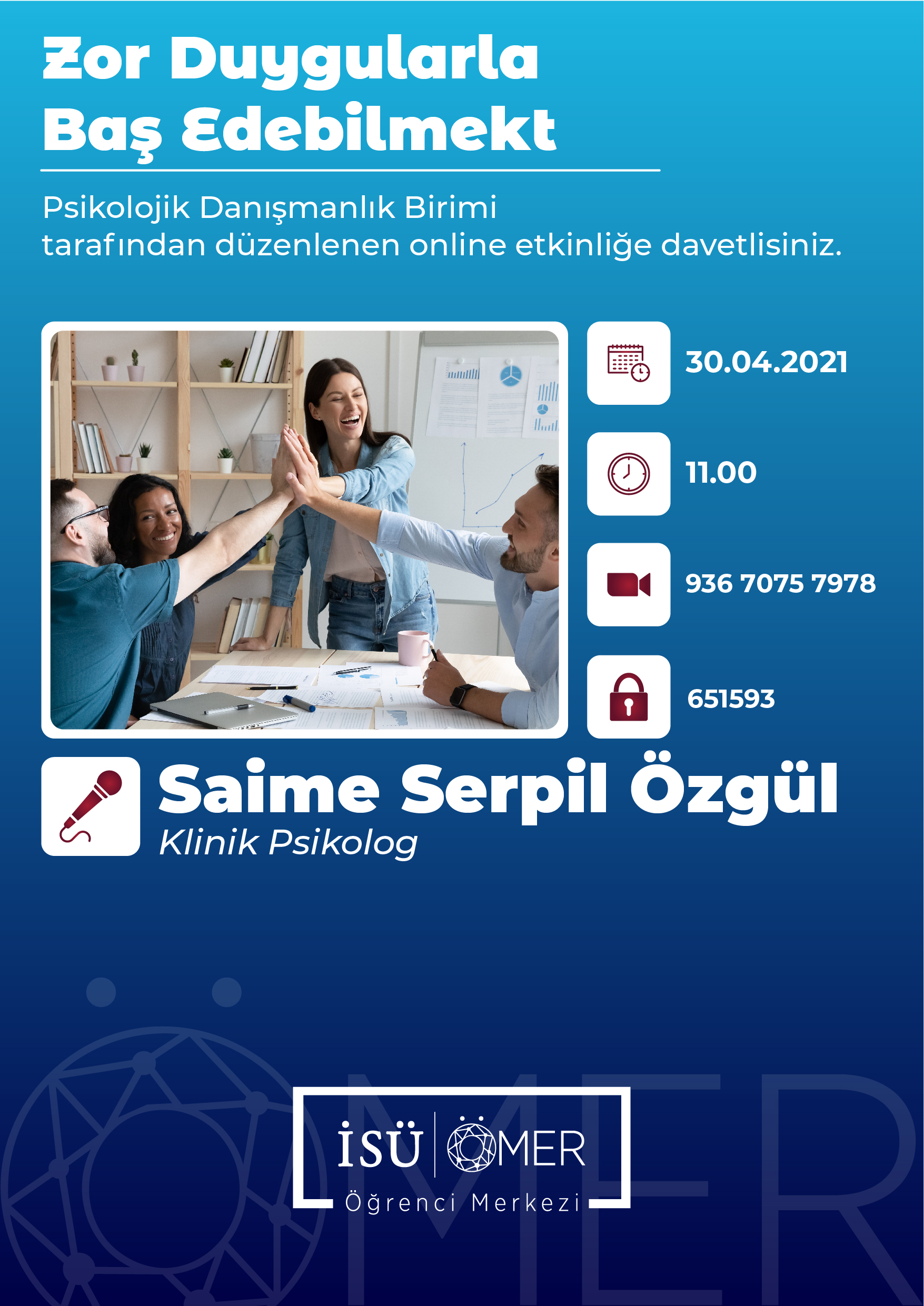 Psikolojik Danışmanlık Birimi tarafından gerçekleştirilecek olan  Zor Duygularla Baş Edebilmek oturumumuza tüm öğrencilerimizi bekliyoruz.