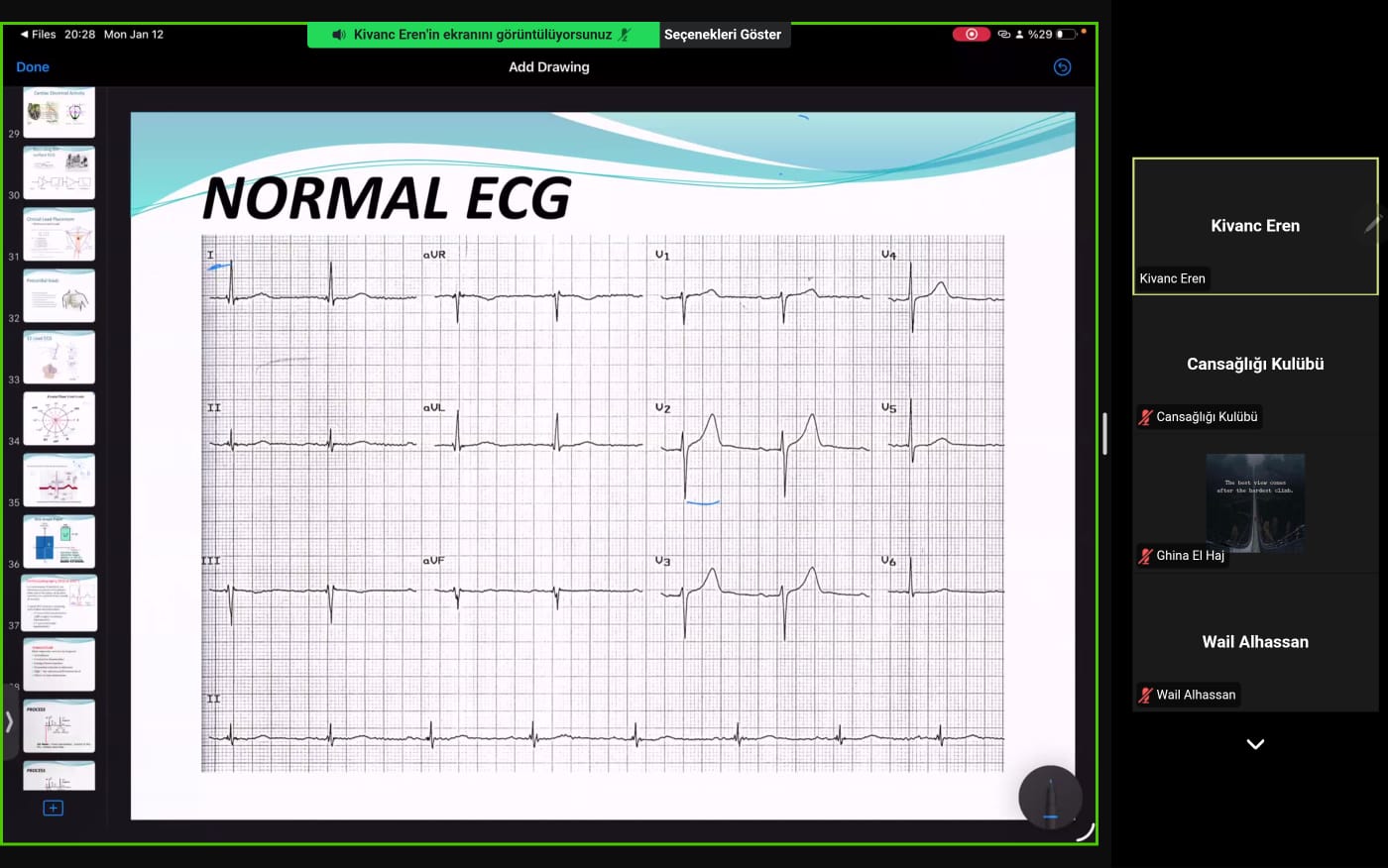 Etkinlik boyunca farklı EKG örnekleri üzerinden değerlendirmeler yapılırken, öğrenciler hem teorik bilgilerini pekiştirdi hem de pratikte karşılaşılabilecek durumlara dair genel bir bakış kazandı. Çevrim içi format sayesinde katılımcılar, konuya dair merak ettikleri soruları doğrudan yöneltebildi ve interaktif bir öğrenme ortamı oluştu.