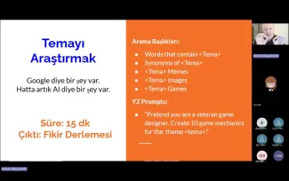 Eğitim serisinin ikinci gününde, Dr. Altuğ Işıgan tarafından gerçekleştirilen Game Design / Oyun Tasarımı eğitimi ile oyun mekaniği, hikâye kurgusu, oyuncu motivasyonu ve dengeli oyun tasarımı gibi temel kavramlar detaylı şekilde aktarıldı. Bu oturumda katılımcılar, başarılı bir oyunun arkasındaki tasarım süreçlerini ve yaratıcı düşünmenin oyun geliştirme sürecindeki rolünü öğrenme fırsatı buldu.