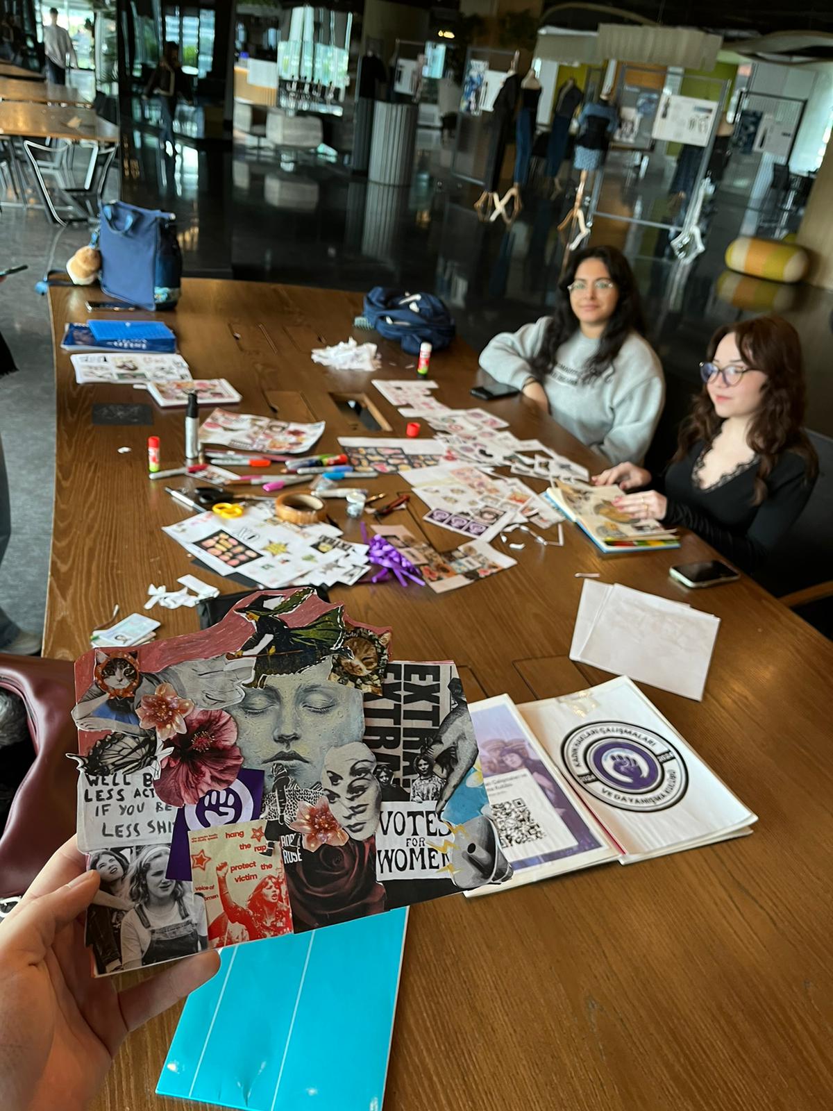Atölye kapsamında katılımcılar, kadın haklarıyla ilgili sohbetler gerçekleştirerek, toplumsal cinsiyet eşitliği ve kadınların tarihsel ve güncel mücadeleleri üzerine fikir alışverişinde bulundular. Ardından, bu sohbetlerden ortaya çıkan fikir ve görselleri kesip yapıştırarak, ortak bir kolektif hafıza kolajı oluşturdular. Böylece hem bireysel düşünceler hem de grup perspektifi bir araya gelerek yaratıcı bir görsel çalışma ortaya çıktı.