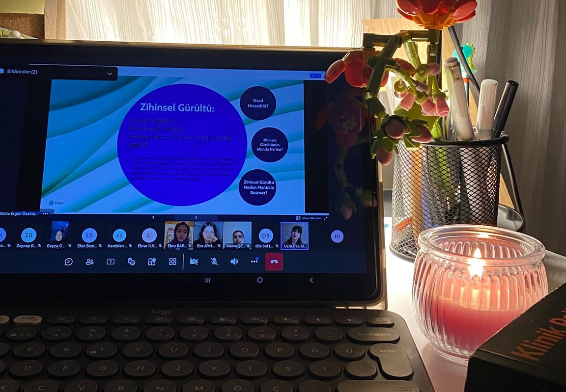 Psikoloji Kulübü tarafından 12 Aralık tarihinde çevrim içi olarak düzenlenen “Zihinsel Gürültü: Sürekli Düşünmekten Nasıl Dinleniriz?” başlıklı etkinlik, öğrencilerin yoğun katılımıyla gerçekleştirildi.