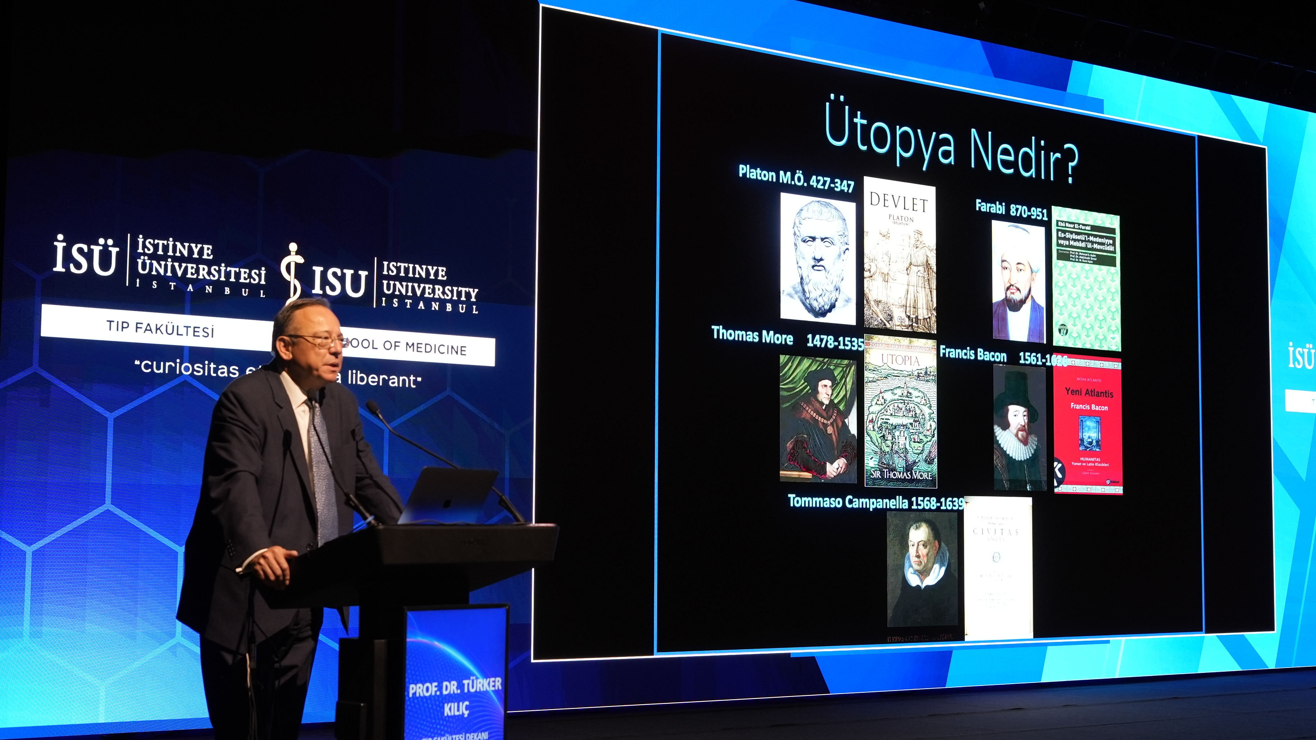 Tıp Fakültesi Dekanı Prof. Dr. Türker Kılıç, akademik kariyerin bir yaşam felsefesi olduğunu belirterek, “İyi bir bilim insanı ve hekim olmak bir yaşam biçimidir” dedi. Kılıç, bilimin temel doğasına da değinerek, “İnsan beyni nasıl düşünce oluşturuyorsa, benzer bir matematikle yaşam da gerçekliğimizi inşa ediyor. Tıp Fakültesi olarak bizler, yaşamın sonsuz olasılığını bilime ve insanlığa katkı sunarak hayata geçirmek için buradayız” ifadelerini kullandı.