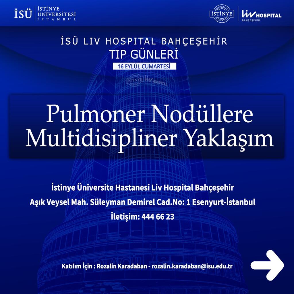 Pulmoner nodüllere multidisipliner yaklaşım başlıklı etkinliğimiz İstinye Üniversitesi Bahçeşehir Hastanemizde farklı alanlardan uzmanların katkıları ve katılımcıların yoğun ilgisi ile gerçekleşti. Etkinliği düzenleyen Göğüs Hastalıkları Anabilim Dalı Başkanımız Doç. Dr. Adil Can Güngen'in şahsında tüm emeği geçenleri kutluyor, katılım gösteren meslektaşlarımıza teşekkür ediyoruz.