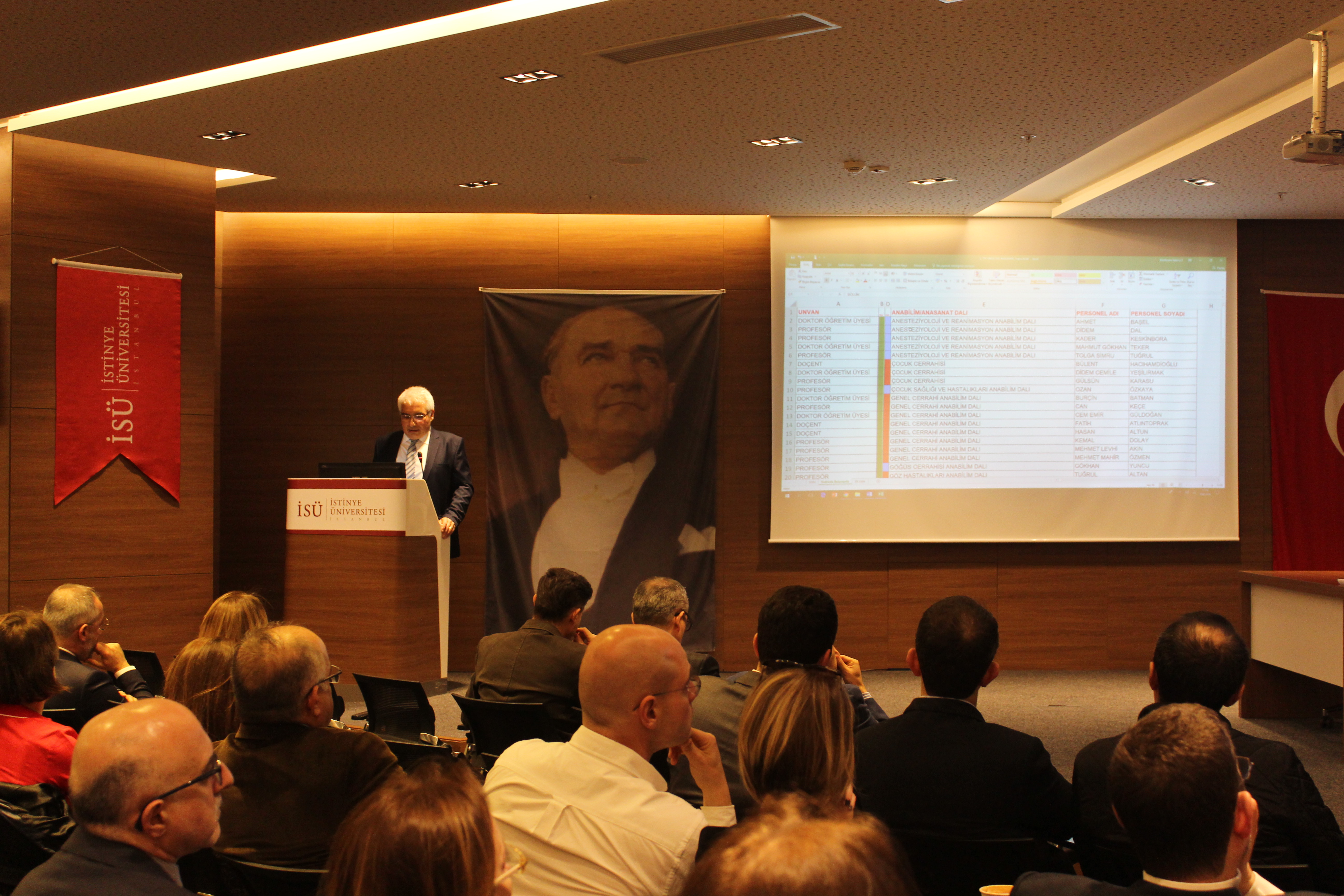 Katılımın yüksek olduğu toplantı, İstinye Üniversitesi Tıp Fakültesi Dekanı Prof. Dr. Sacit KARAMÜRSEL’in konuşmasıyla başladı. Üniversitenin ve Tıp fakültesinin 2 yılda gerçekleştirdiği çıkışı sürdürmek istediklerinin altını çizen Prof. Dr. Sacit KARAMÜRSEL, Tıp eğitiminde Türkiye’nin sayılı üniversiteleri arasında yer almak istediklerini söyledi. İstinye Üniversitesi Tıp Fakültesi Anabilim Dalı Başkanlarının seçildiği toplantıda, akademik kadronun önerileri ve istekleri değerlendirildi.