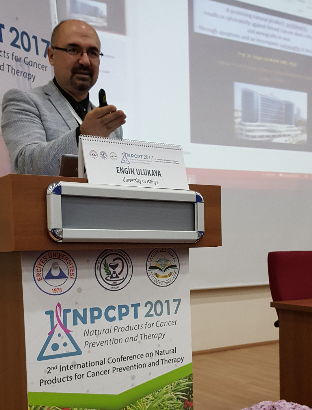 İstinye Üniversitesi Tıp Fakültesi Öğretim Üyesi Prof. Dr. Engin Ulukaya, 8-10 Kasım 2017 tarihlerinde düzenlenen 2nd International Natural Products for Cancer Prevention and Therapy kongresinde “A promising natural products, pristimerin, results in cytotoxicity against Breast Cancer stem cells in vitro and xenografts in vivo through apoptosis and incomplete autophagy in breast cancer” isimli konuşmasını yapmıştır. Kongrede besinlerle alınan çeşitli doğal bileşiklerin kanserin önlenmesinde ve tedavisindeki rolü tartışılmıştır.
