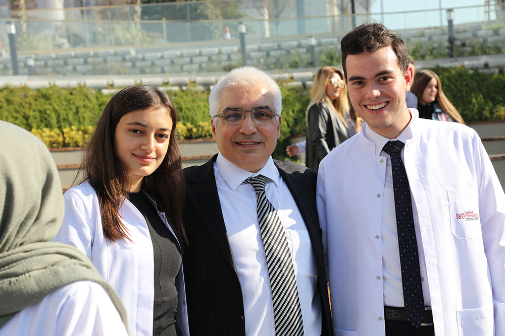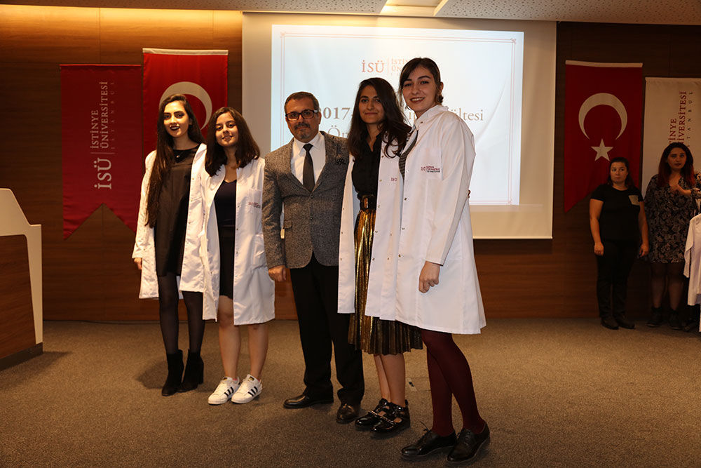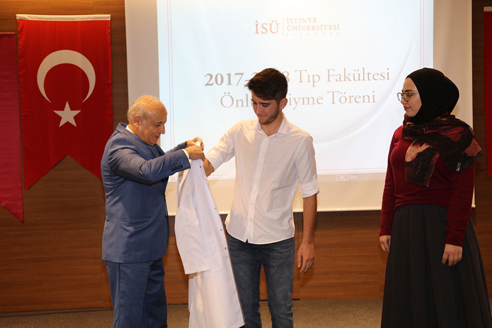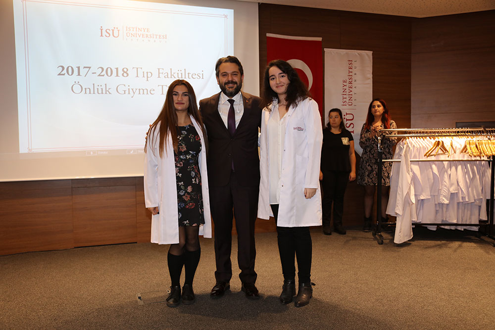 Tıp Fakültesi Dekanımız Prof. Dr. Sacit Karamürsel, "Önlük giyme töreni bütün öğrencilerimizin en heyecanlı ve gururlu oldukları, bizim de onları meslektaşımız olarak görmeye başladığımız ilk gün oluyor. Bunun için son derece önemli, tıp alanının en önemli ritüellerinden bir tanesidir. Bu törende anneleri, babaları da onların birer doktor adayıyken, yarı doktor hatta artık meslektaşımız olmalarına şahitlik ediyorlar. Aileler için çok büyük bir gurur ve mutluluk.Doktor adaylarımızın her şeyden önce etik kurallara bağlı olarak, pozitif bilimin kurallarına uyarak, hepsi birer lider olarak ama aynı zamanda ülkemiz gerçeklerini de tanıyarak dünyadan kopmadan dünya bilimi ve tıbbıyla iç içe yeni bilgiler üreten doktorlar olmasını istiyoruz ve eğitimimizi buna göre yapıyoruz" diye konuştu.