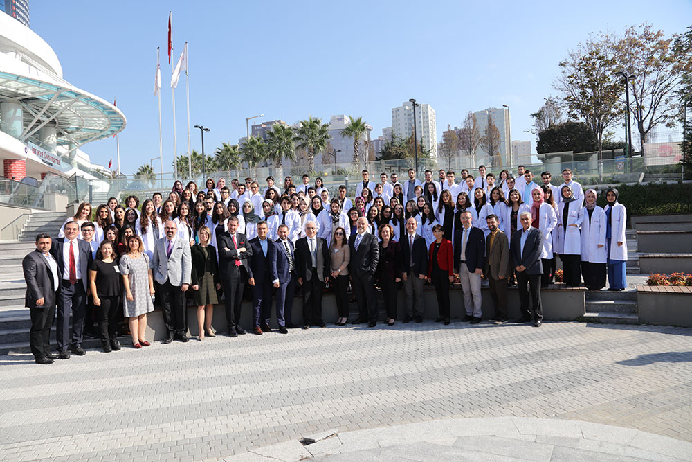 Geleceğin doktorlarının mesleğe ilk adımı olarak kabul edilen 'beyaz önlük giyme töreni' hafta sonu İstinye Üniversitesi'nde ikinci kez gerçekleşti. Törene, Rektörümüz Prof. Dr. Melih Bulu, Rektör Yardımcımız Prof. Dr. Erdal Karaöz, Tıp Fakültesi Dekanımız Prof. Dr. Sacit Karamürsel ile çok sayıda akademisyen ve davetli katıldı.