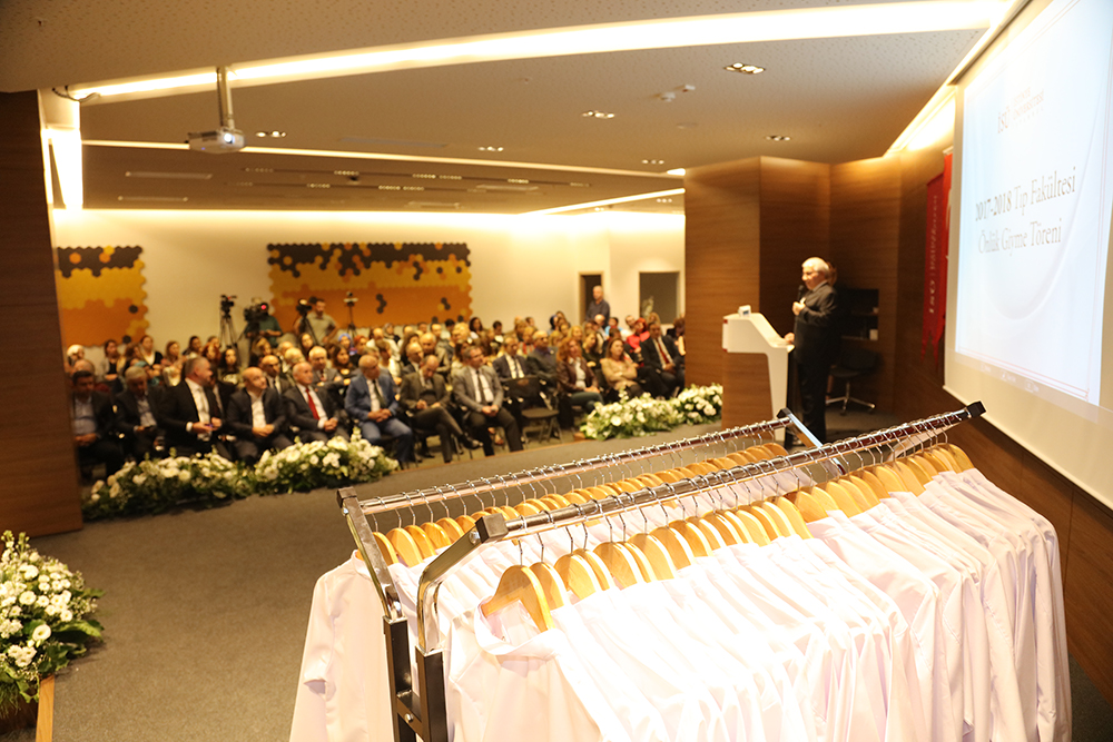 Doktor adaylarının heyecanlarının yüzlerinden okunduğu törende açılış konuşmalarını Rektörümüz Prof. Dr. Melih Bulu, Tıp Fakültesi Dekanımız Prof. Dr. Sacit Karamürsel ve 2017-2018 Akademik Yılında Tıp Fakültesi'ne birincilikle giren öğrenci Dilanur Ağır yaptı. Konuşmaların ardından öğrencilere hocaları tarafından önlükleri törenle giydirildi.
